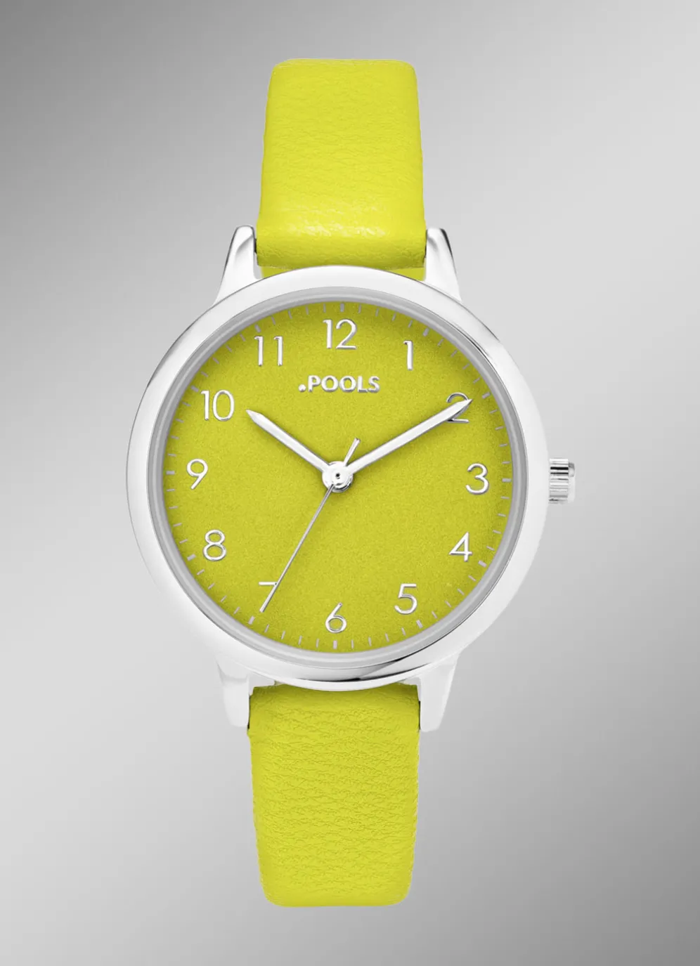 Unsere neue Damenuhr ist das perfekte Accessoire für jeden Anlass. Mit ihrem robusten silberfarbenen Metallgehäuse und dem eleganten hellgrünen Kunstlederband mit Dornschliesse ist sie sowohl langlebig als auch stilvoll. Das Minerlaglas schützt das farblich abgestimmte Zifferblatt vor Kratzern und Beschädigungen.