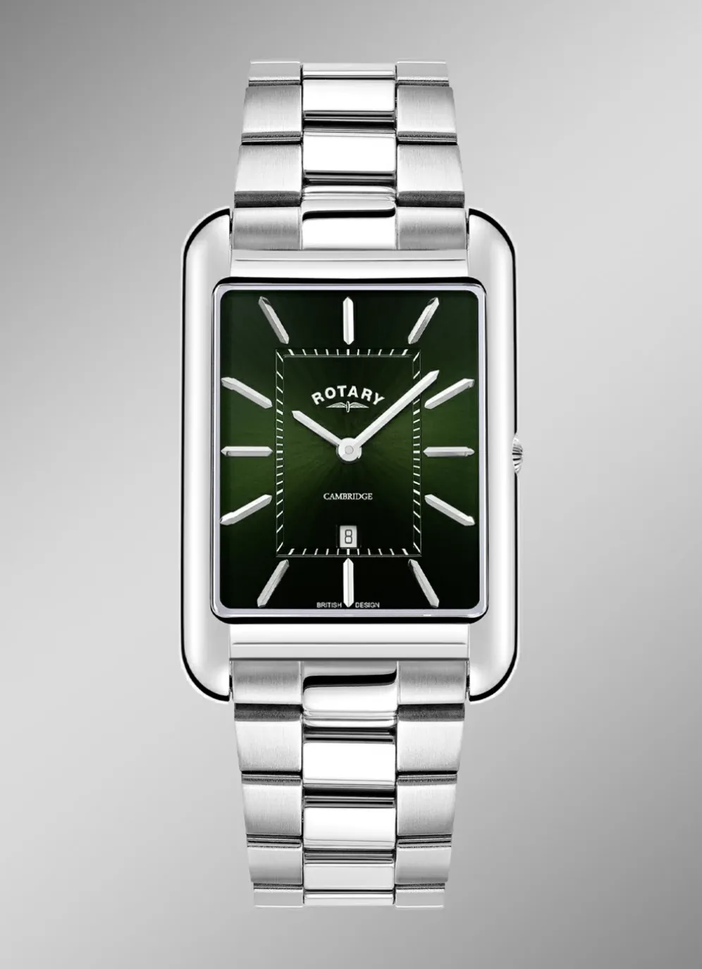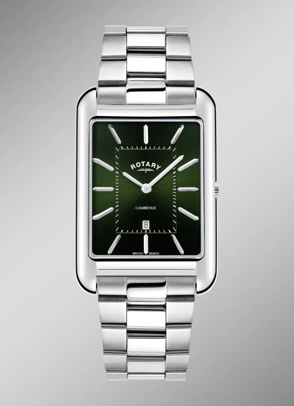 Dieses Modell vereint Tradition und modernes Design in einem atemberaubend geformten Gehäuse, einer verdeckten Krone, applizierten, facettierten Indizes und Zeigern sowie einem Zifferblatt mit smaragdfarbenem Farbverlauf und einem Datumsfenster auf der Sechs.