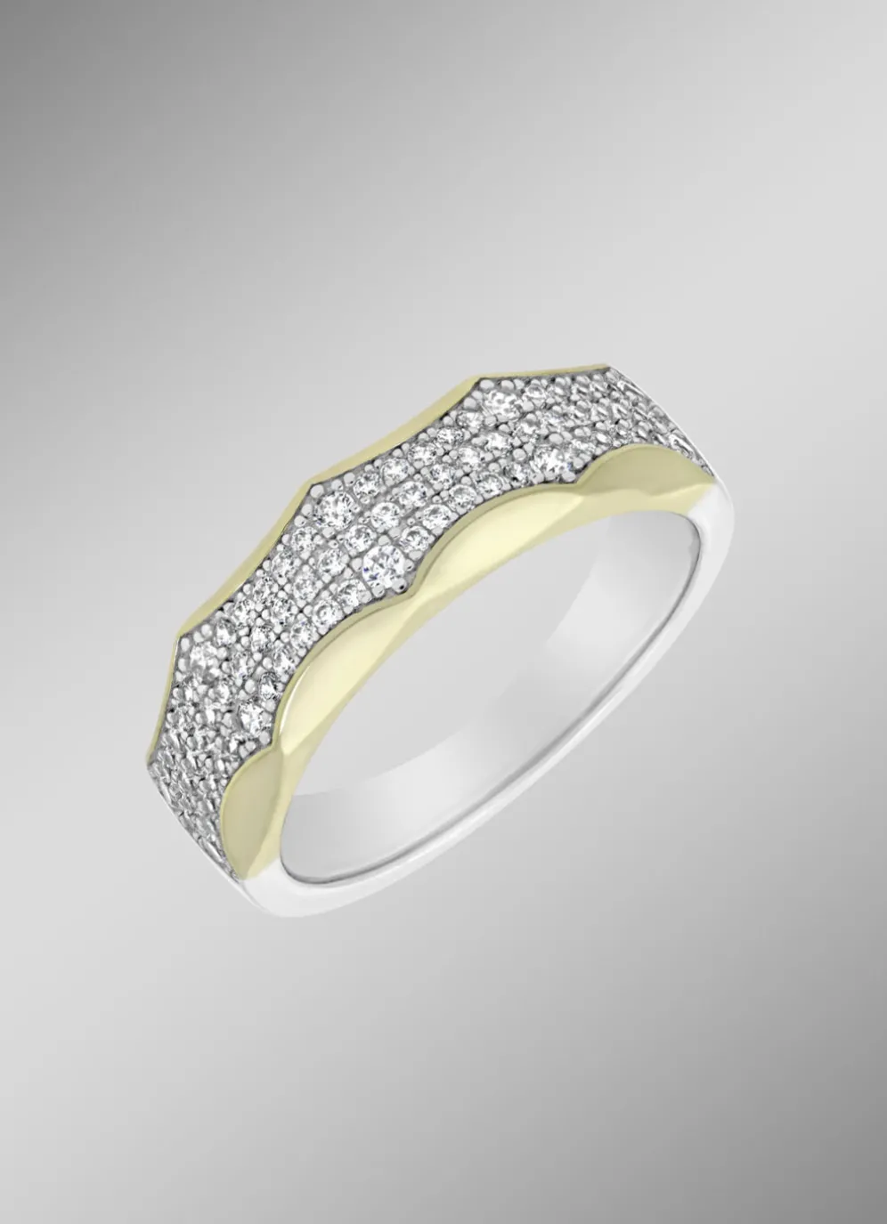 Eleganz trifft auf raffiniertes Design – dieser stilvolle Damenring aus Silber 925/- fein begeistert mit seinem edlen Bicolor-Look. Die funkelnden synth. Zirkonia setzen ein strahlendes Highlight und verleihen dem Ring einen Hauch von luxuriösem Glanz.