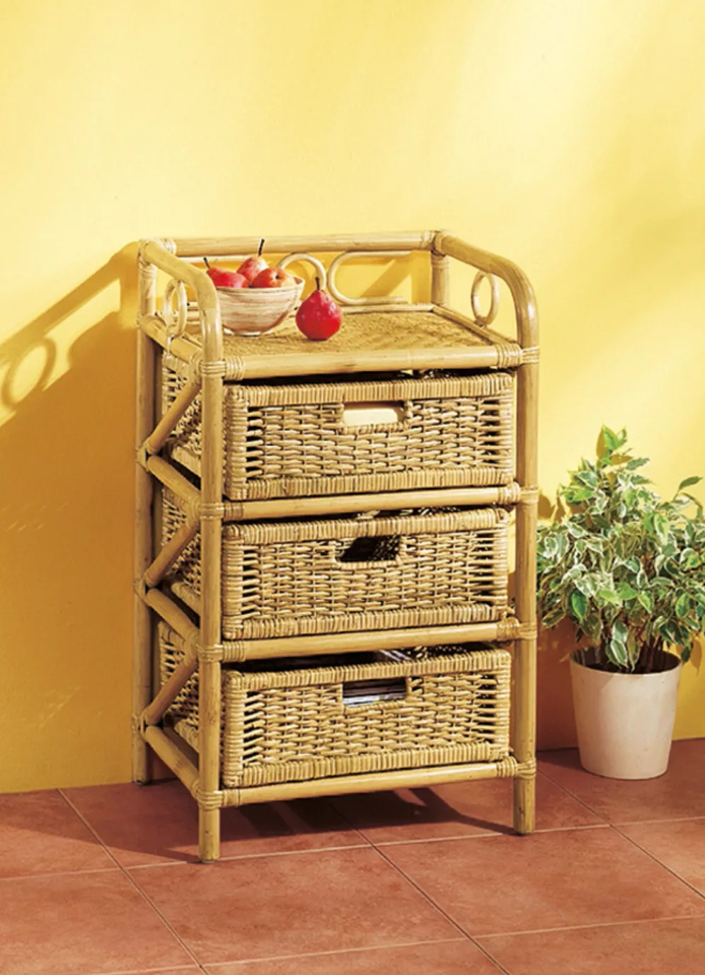 Rattan Regal in der Ausführung Mit 3 großen Schubladen und in Honig.