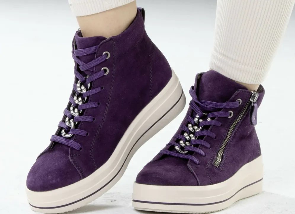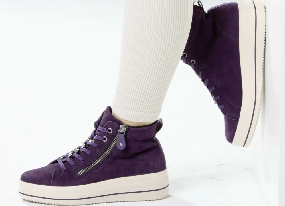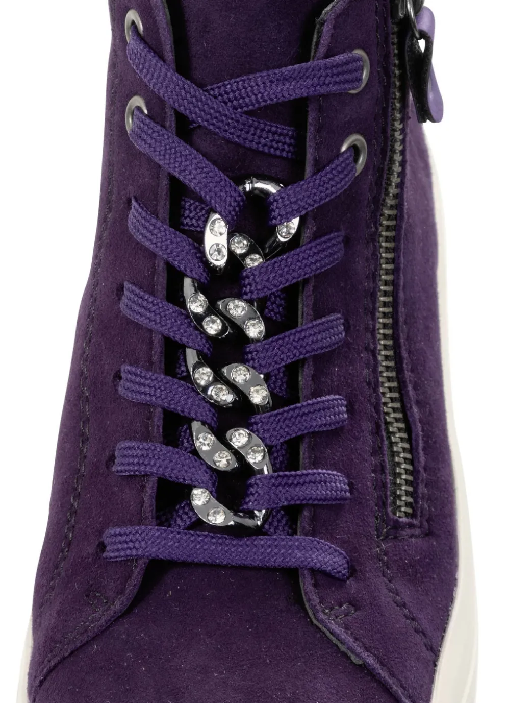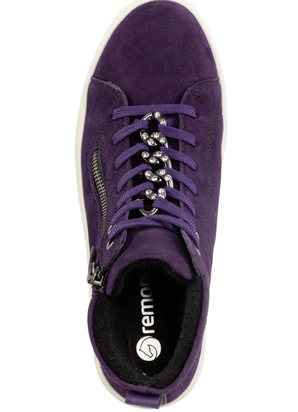 Remonte Bootie mit funkelnder Zierkette an der Schnürung in Lila und in Größe 36.