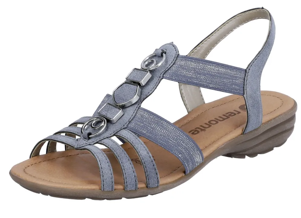 Remonte Riemchen-Sandalen mit Metallschmuck in Jeans und in Größe 40.