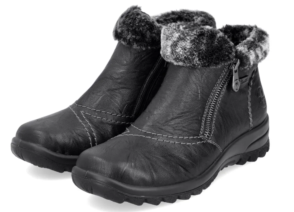 Rieker, gefütterte Damen-Boots, Winterschuhe, mit Reißverschluss in Schwarz und in Größe 41.