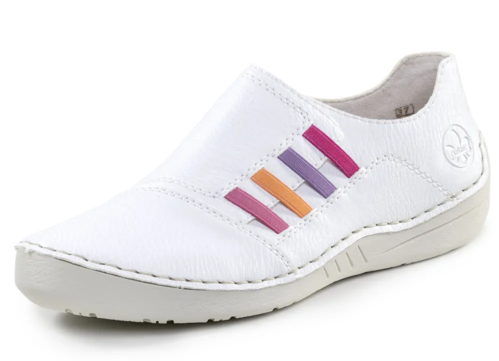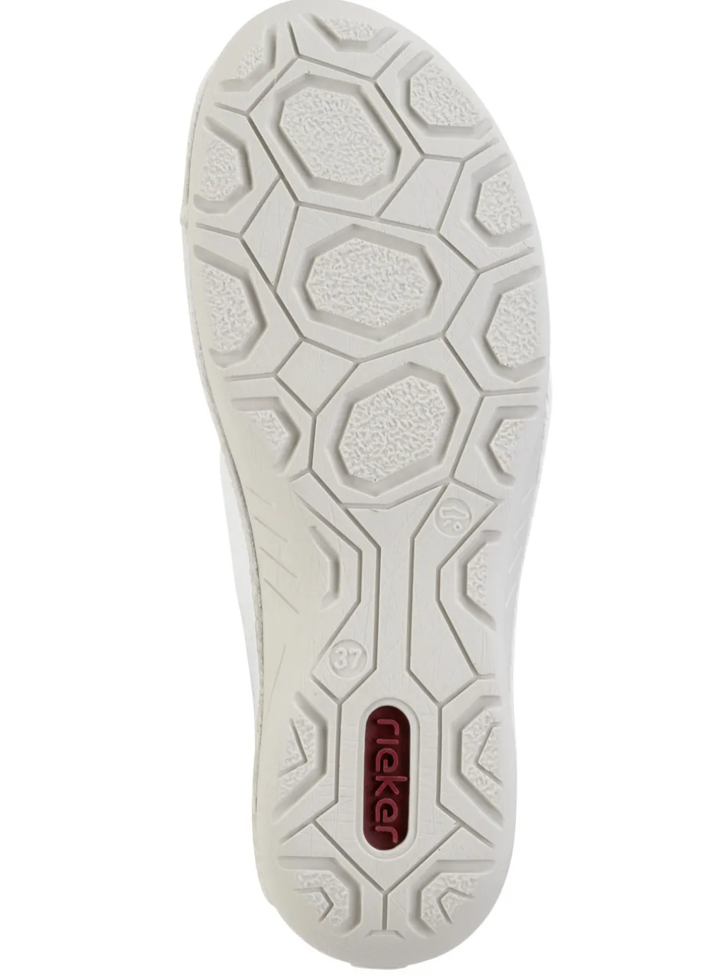 Rieker, klassische Damen-Slipper, mit Gummizug in Weiss und in Größe 37.