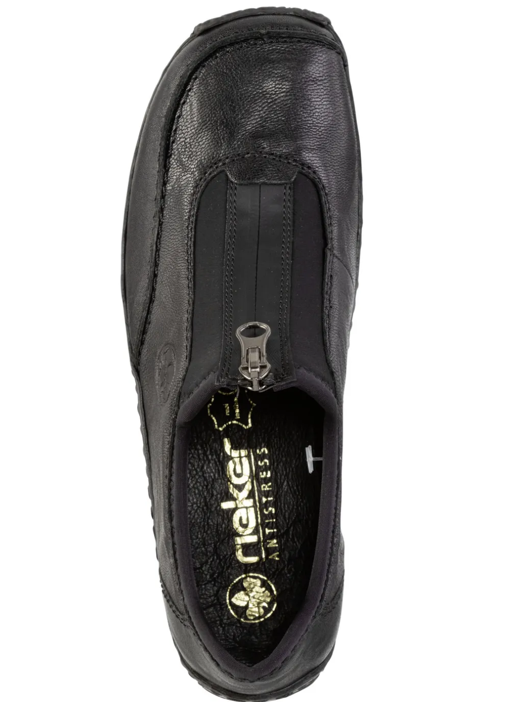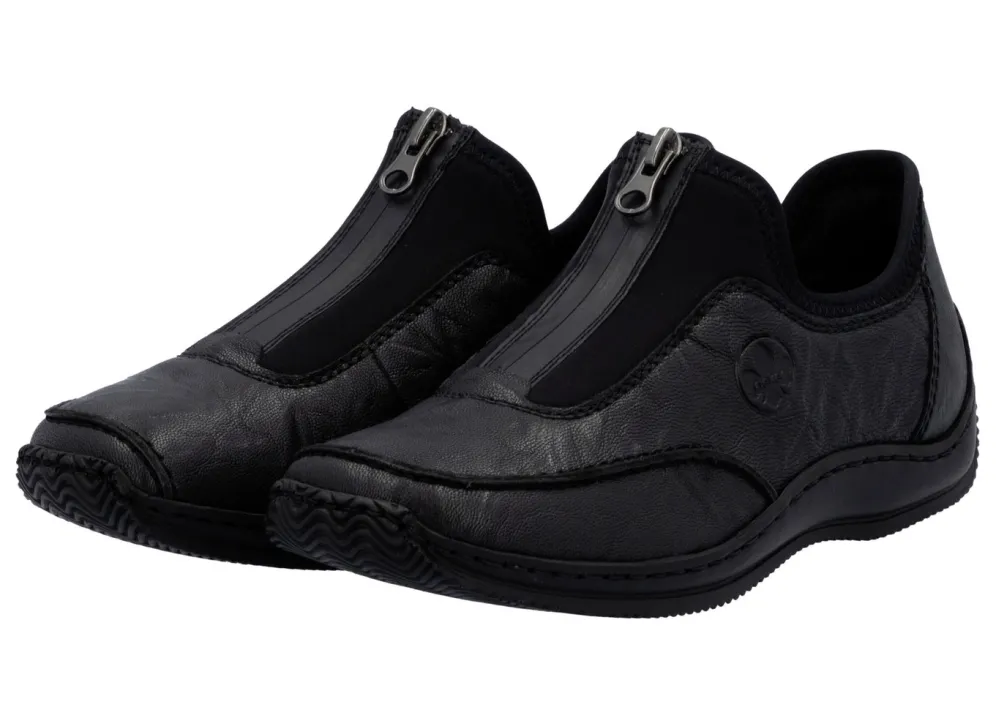 Rieker, klassische Damen-Slipper, mit Reißverschluss in Schwarz und in Größe 42.