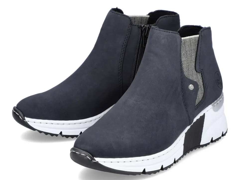 Rieker, modische Damen-Boots, Weite G, mit Reißverschluss in Dunkelblau und in Größe 39.
