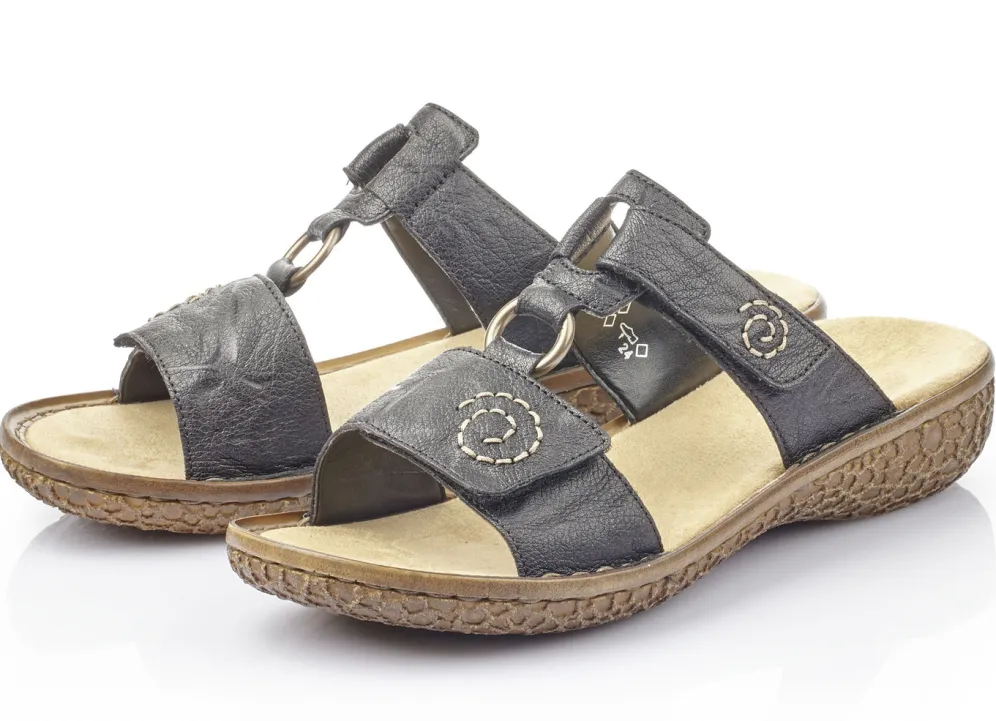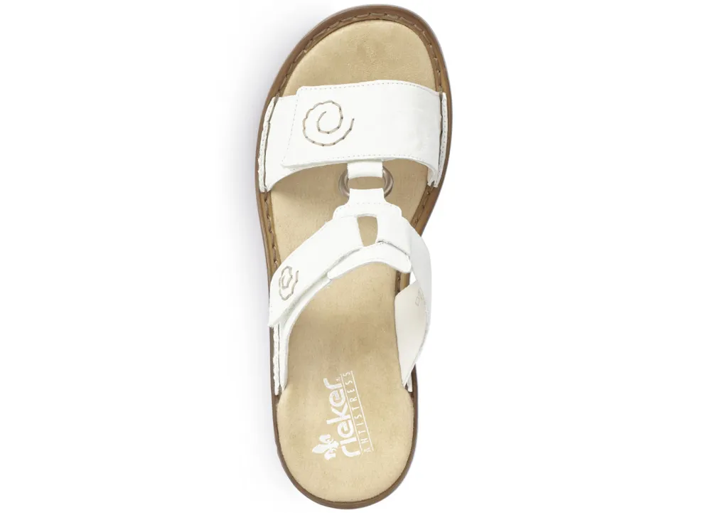 Rieker, modische Damen-Pantoletten, Weite H, mit Klettverschluss in Weiss und in Größe 42.