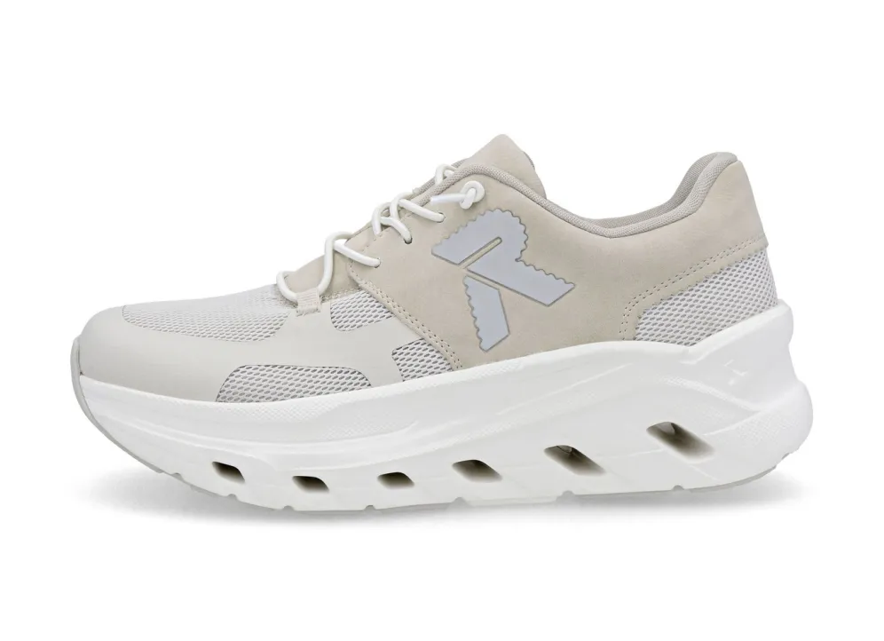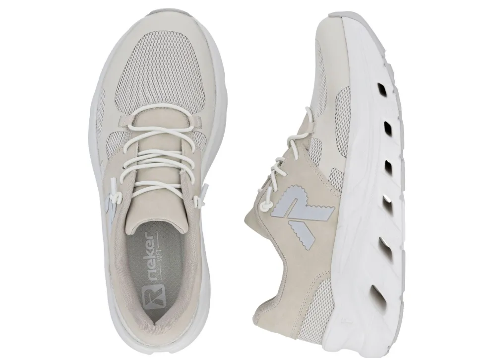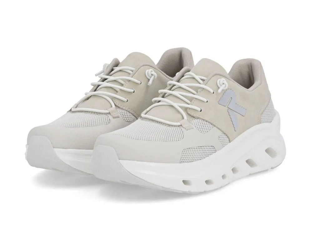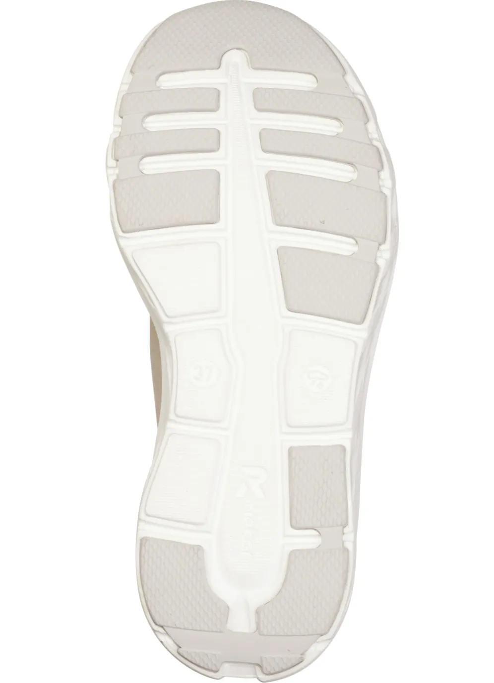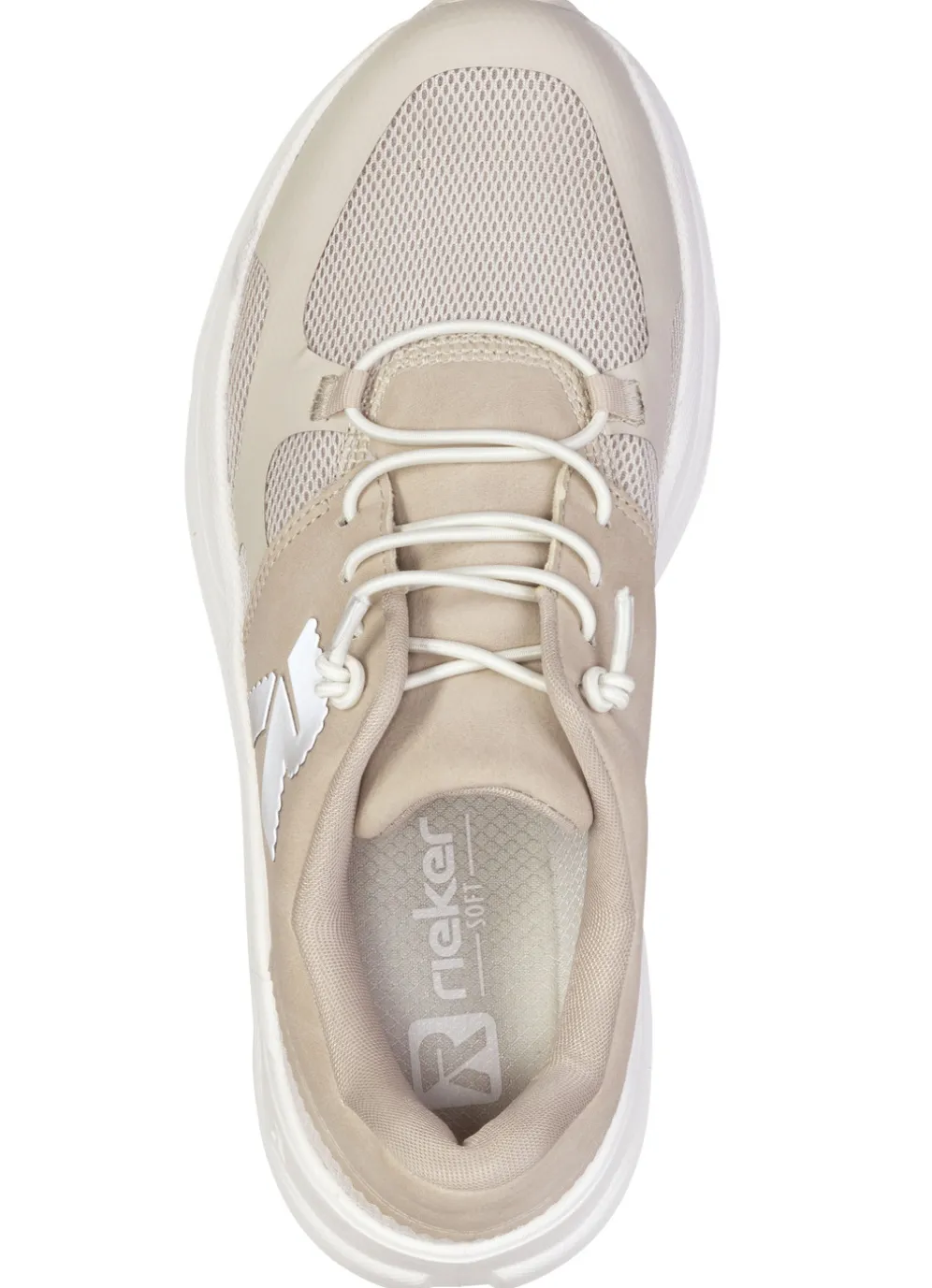 Rieker, sportive Damen-Sneaker, Weite G, mit herausnehmbarem Fußbett in Hellbeige und in Größe 40.