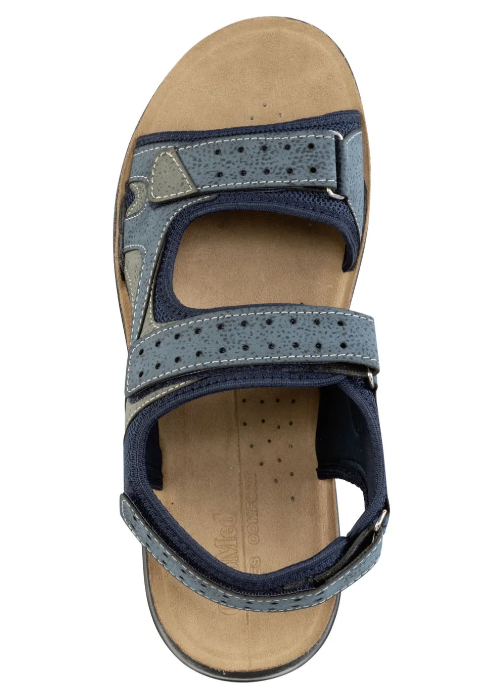 Sandale aus Synthetik und Textil: Weite H, Zier-Perforation, drei Klettspangen, Textilfutter, gepolstertes Lederfußbett, superleichte PU-Profilsohle