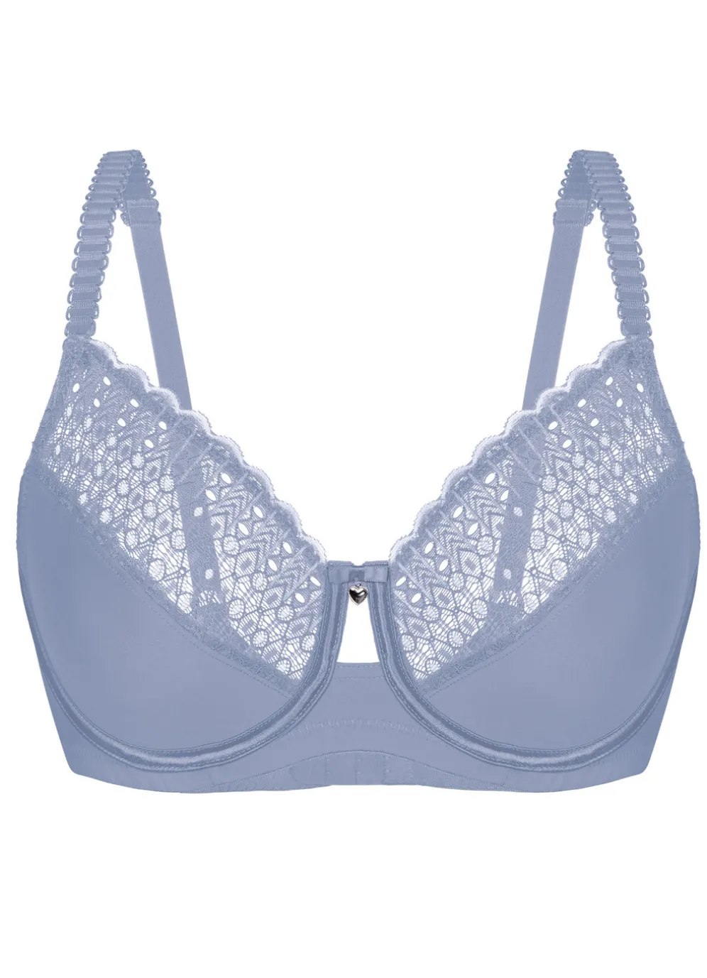 Bügel-BH von „Sassa“, mit elastischen Spitzeneinsätzen im Vorderteil, unterlegten Untercups, seitlichen Stützstäbchen sowie verstellbaren Stretchträgern.
