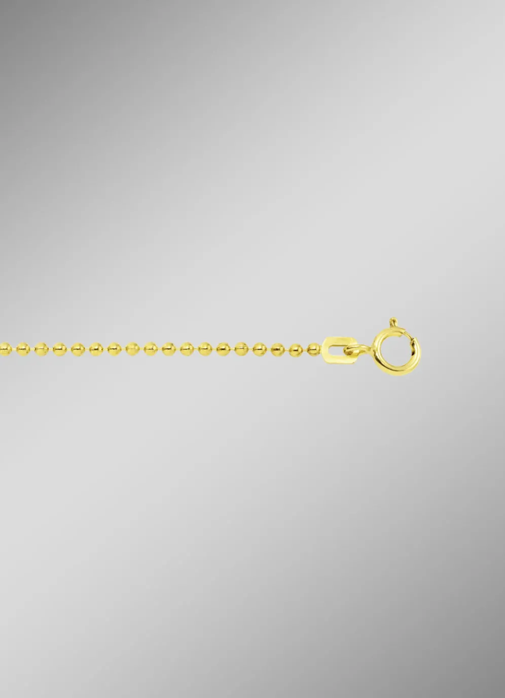 Verleihen Sie Ihrem Stil zeitlose Eleganz mit dieser hochwertigen Kugelkette! Gefertigt aus Gold 585/- fein oder Gold 333/- fein, besticht diese zarte Kette mit einer filigranen Breite von 1,5 mm. Der sichere Federring-Verschluss sorgt für optimalen Tragekomfort. Hergestellt in Deutschland, steht dieses Schmuckstück für höchste Qualität und präzise Handwerkskunst. Perfekt als stilvolles Accessoire für jeden Anlass oder als wertvolles Geschenk!