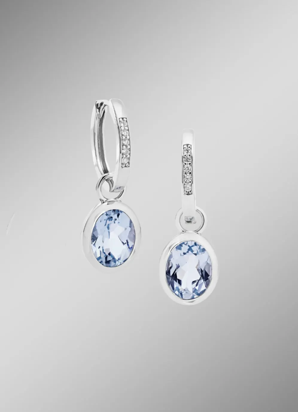 Schicke Ohrringe mit beh. Blautopas und synth. Zirkonia in der Legierung Silber 925/- fein.