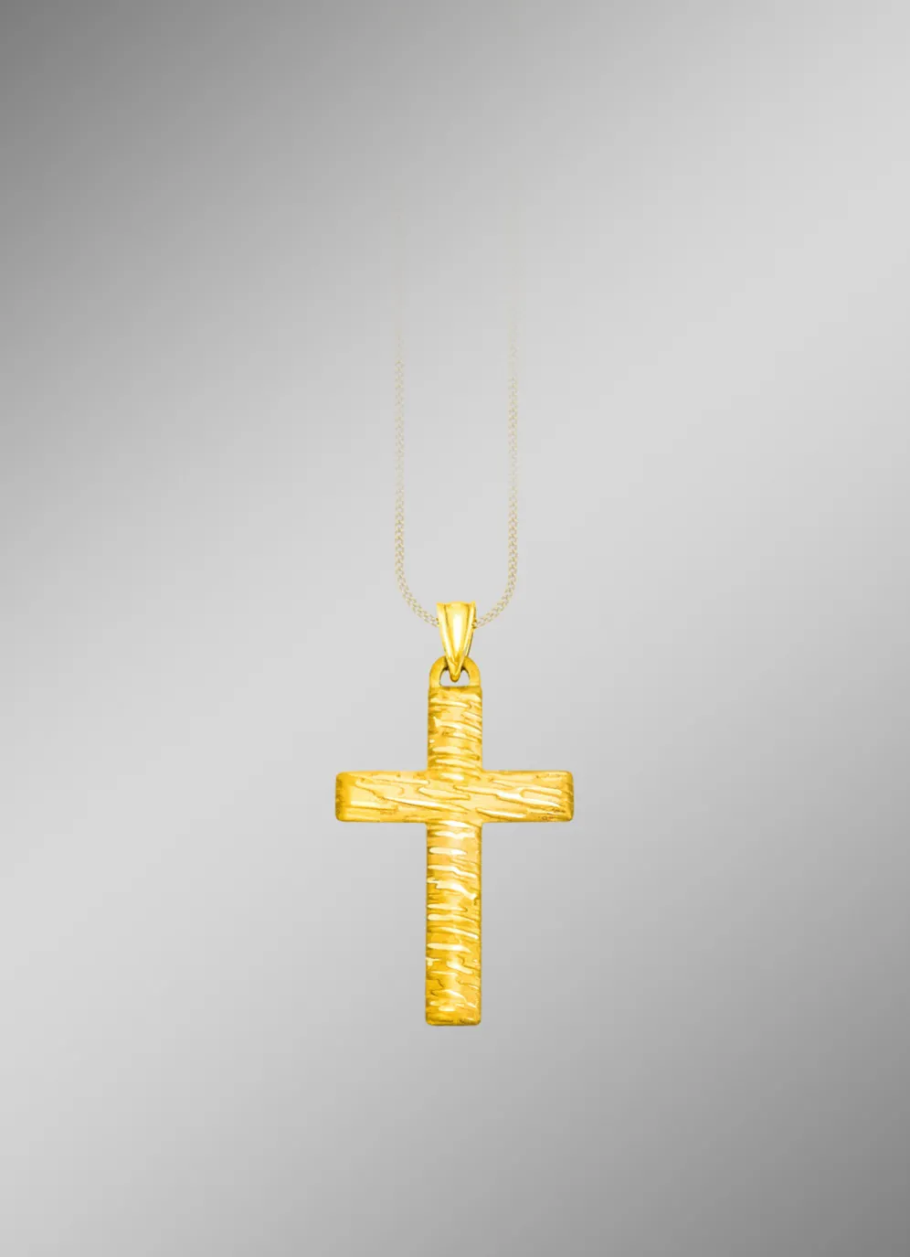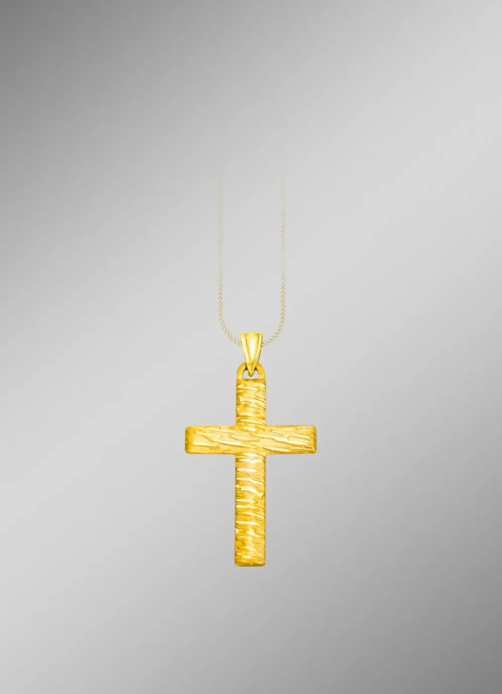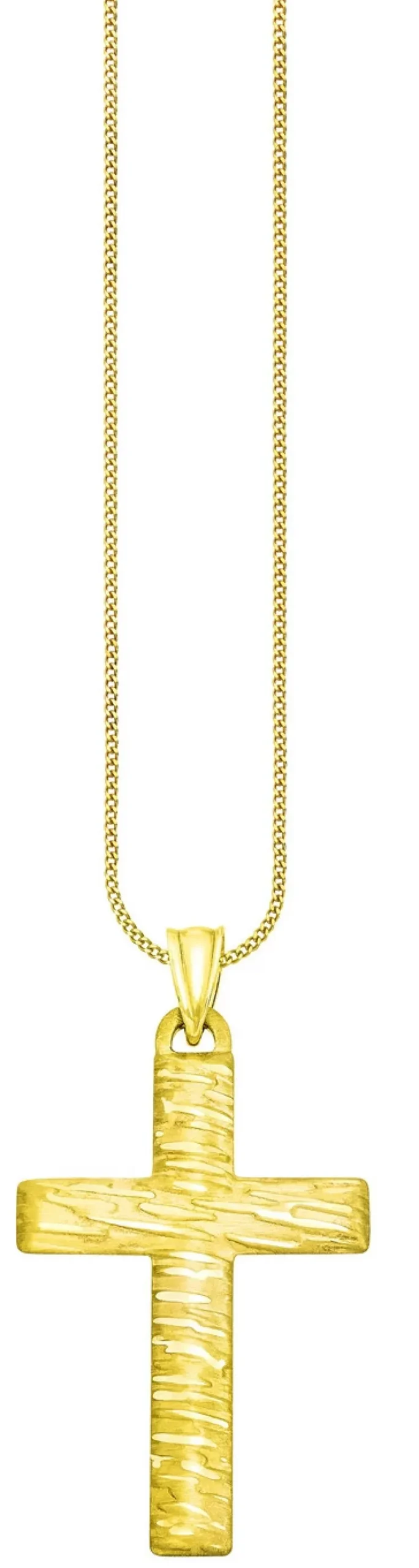 Schicker Kreuz-Anhänger in Gold 585/-fein oder Gold 375/-fein mit Struktur. Ein toller Blickfang ist das Kreuz mit den Massen 21×35 mm und ein zeitloses Schmuckstück für die Ewigkeit.
