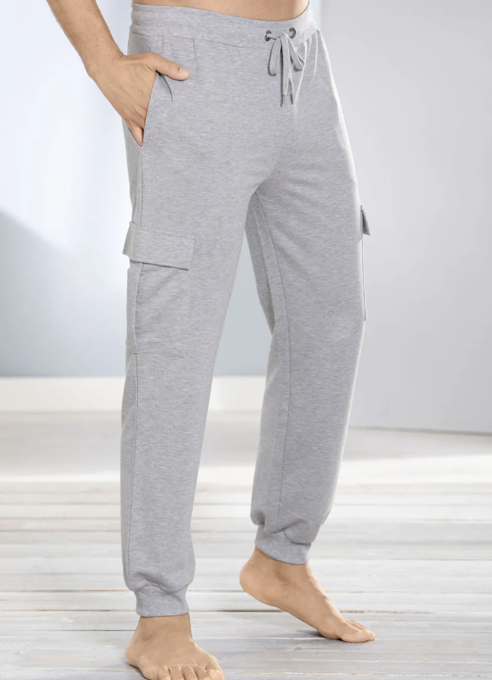 Schlaf-und Freizeithose mit Cargo-und Seitentaschen in Schwarz und in Größe 50.