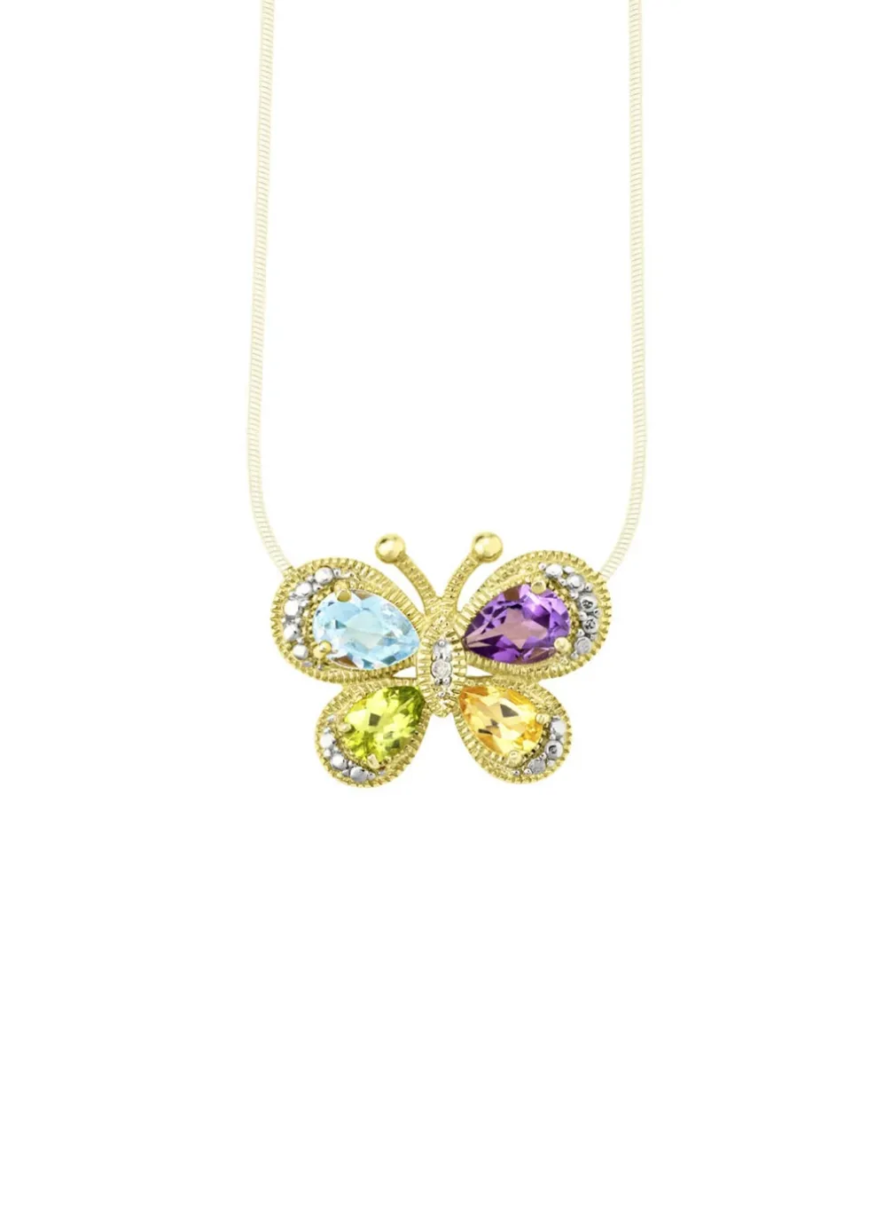 aus 925er Silber. Dieser exquisite Anhänger ist mit einem getönten weißen Diamanten, Piqué2 sowie echten Citrin-, Peridot-, Amethyst- und behandelten Blautopas-Steinen verziert. Mit einer Größe von 16×22 mm ist dieser Anhänger das perfekte Accessoire, um jedem Outfit einen funkelnden Akzent zu verleihen. Lassen Sie sich von der Schönheit und Anmut dieses einzigartigen Schmuckstücks verzaubern und genießen Sie die bewundernden Blicke.