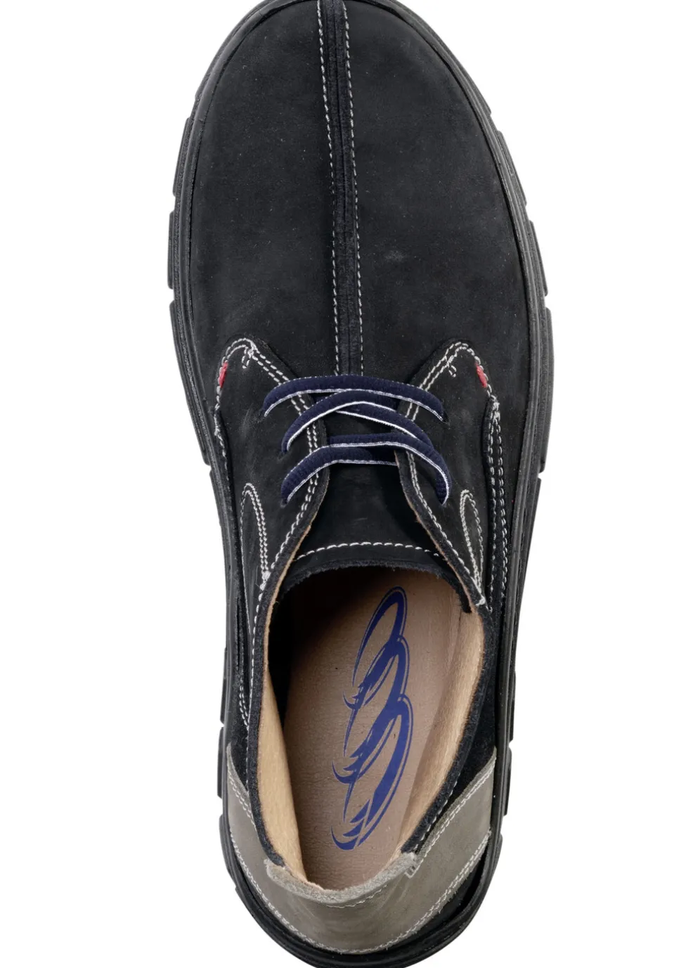 Schnür-Boot aus Nubukleder in Marine-Taupe und in Größe 44.