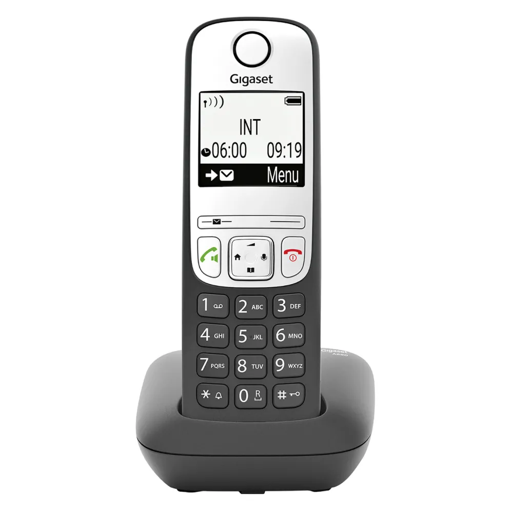 Gigaset A690. Freisprechfunktion in bester Tonqualität. Beleuchtetes schwarz-weiß Display mit Anzeige von Datum, Zeit, Anrufanzeige für eingehende und verpasste Anrufe. Einfache Bedienung durch große, beleuchtete Tastatur. Telefonbuch für bis zu 100 Kontakte. 20 einstellbare Klingeltöne. Der ECO-DECT sorgt für geringen Stromverbrauch und für reduzierte Strahlung. Bis zu 14 Stunden Dauergespräch und 180 Stunden Standby. Reichweite im Freien bis zu 300 m. Maße: B13,7xH19,9xT13,3 cm