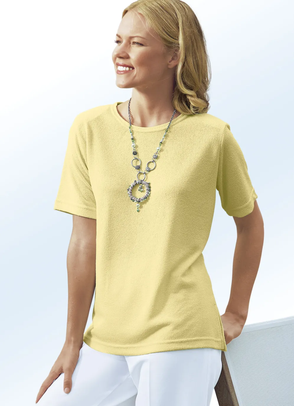 Shirt in 13 Farben mit kurzen Ärmeln in Smaragd und in Größe 38.
