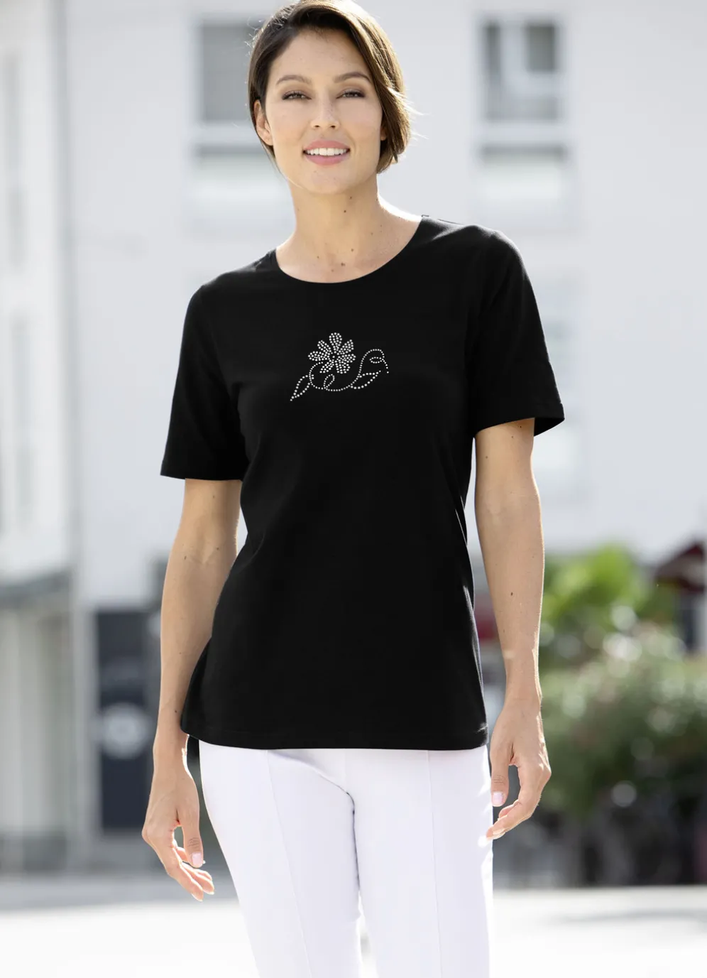 Der hohe Tragekomfort zeichnet dieses herrliche Shirt mit Strasszier im Vorderteil aus.