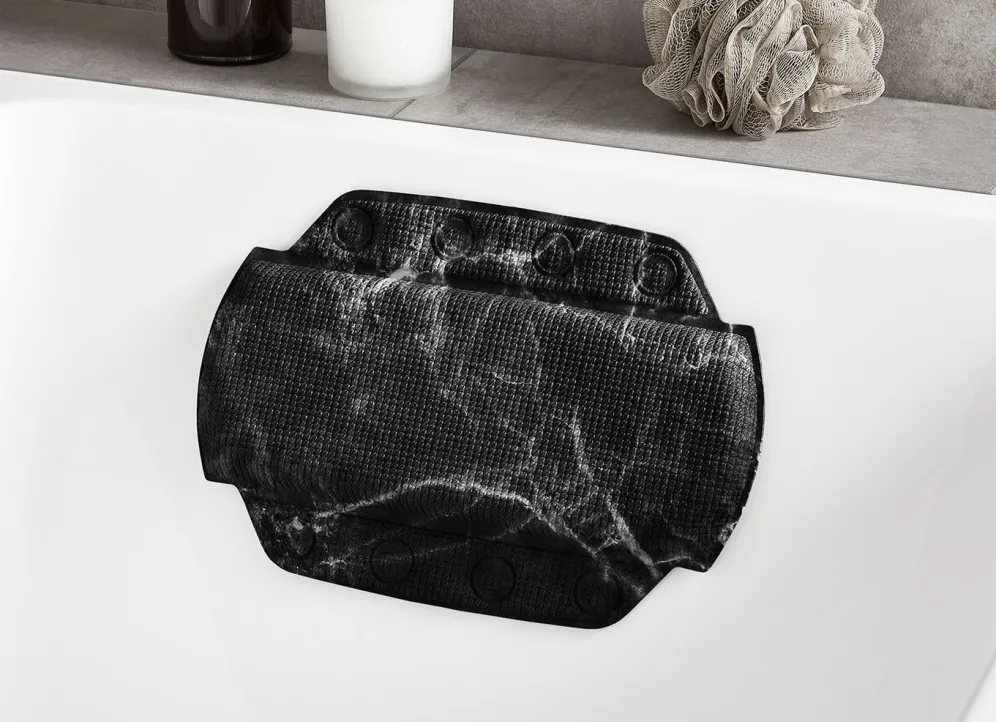 Mit einem Marmor-Dessin sind diese Sicherheits-Einlagen von „Kleine Wolke“ gestaltet, welche für höhere Sicherheit beim Duschen und Baden sorgen sollen. Die Qualität: 100% Polyvinylchlorid. Waschbar bis 40 °C