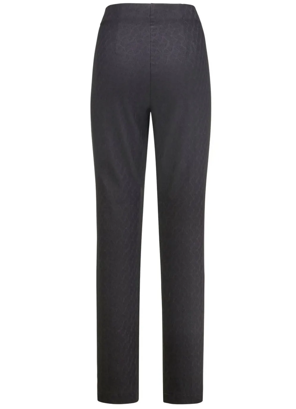 Die Qualität: querelastischer Struktur-Jaquard aus 76% Viskose, 21% Polyamid und 3% Elasthan