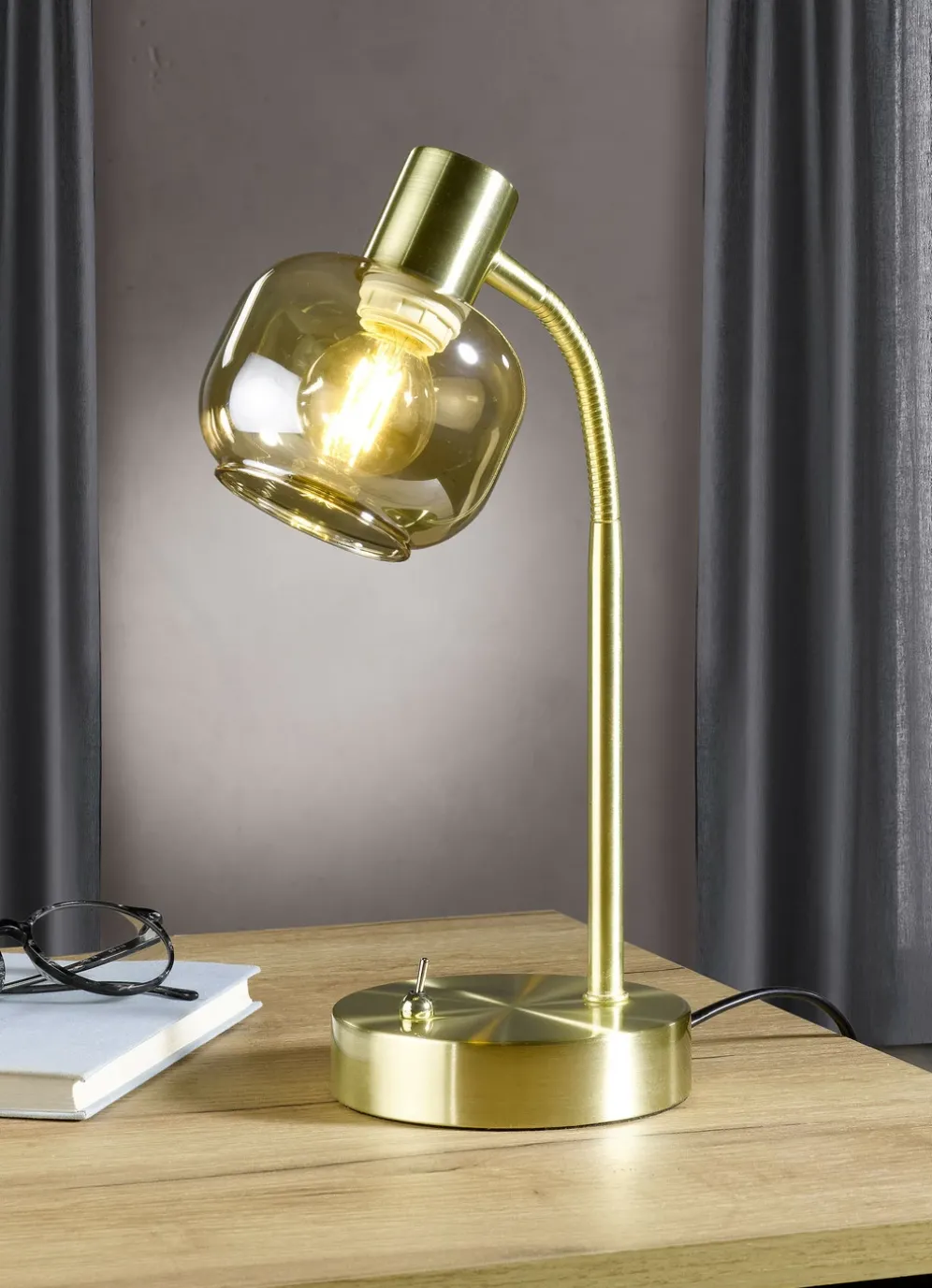 Stilvolle Tischleuchte mit getöntem Glas in Messing.