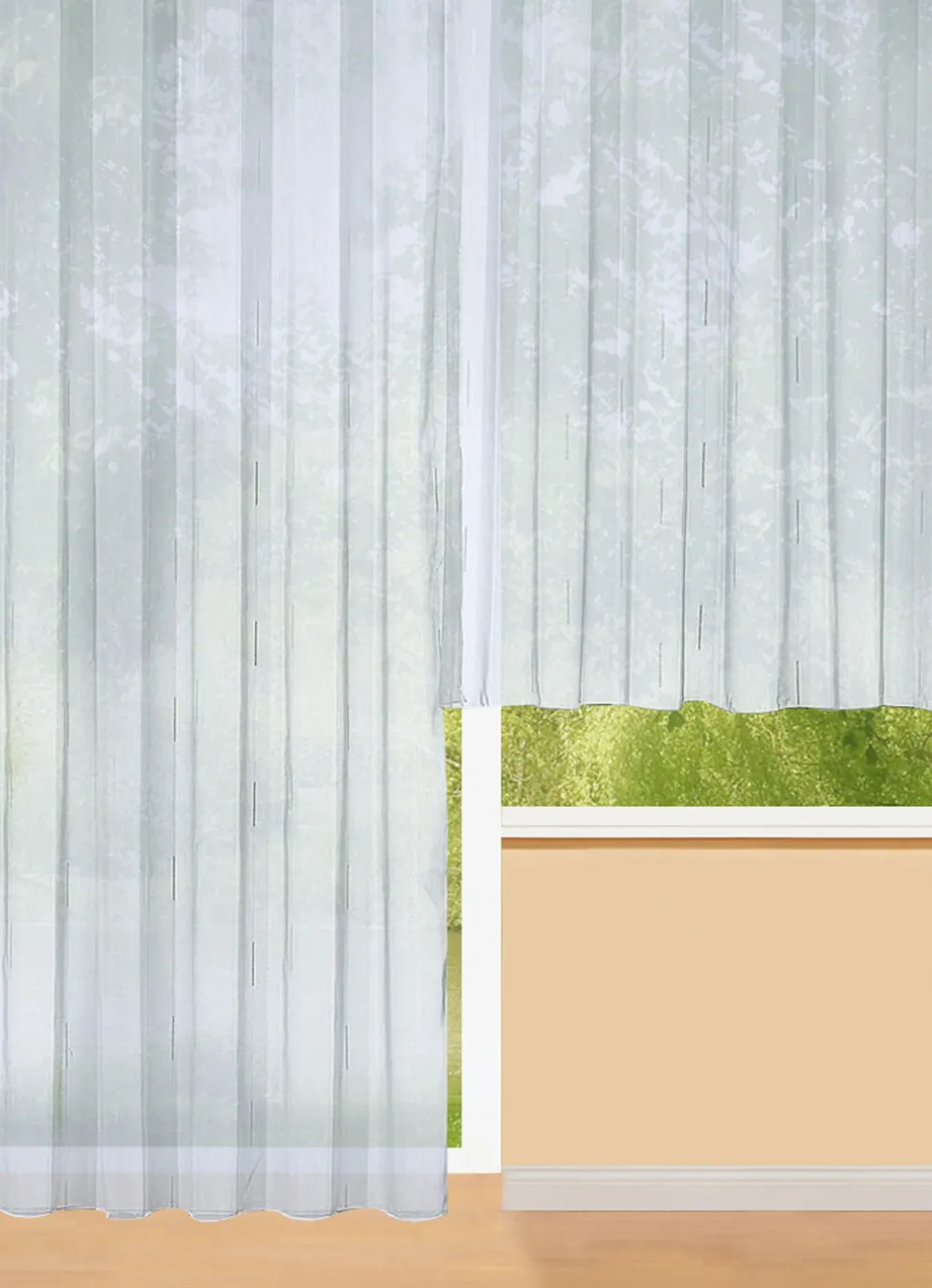 Hochwertiger Store mit Faltenband. Bestellen Sie deshalb bitte 2,5-fache Leisten- bzw. Dekobreite. Mit Bleibandabschluss. Die pflegeleichte Qualität: 100% Polyester.