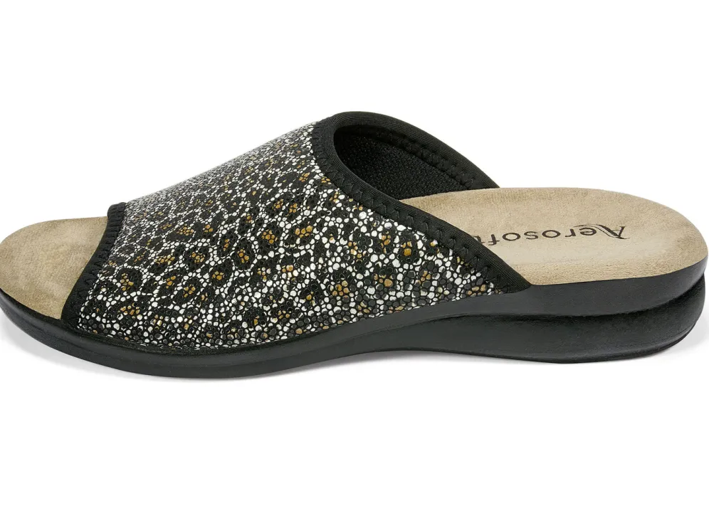 Modische Damen-Schuhe im Leo-Print. Komplett aus Stretchmaterial mit elastischem Einschlupf – passt sich den Füßen optimal an, ohne Druck zu erzeugen, daher besonders geeignet bei Problemfüßen. Ein weicher Auftritt ist durch die PU-Laufsohle mit Microfaser bezogener Decksohle gewährleistet. Obermaterial und Futter: Polyester. Bequemweite G–H. Gr: 36–42.