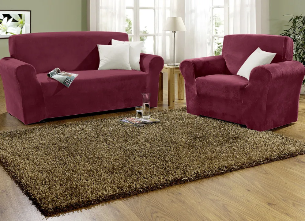 Diese passgenauen, bi-elastischen Stretchbezüge in seidig glänzendem Uni lassen sich prima auf das Möbelstück aufziehen. Mit Fleckschutz-Ausrüstung. Kissenbezug mit Reißverschluss. Die beliebte Qualität: aus 95% Polyester (Microfaser) und 5% Elastan.