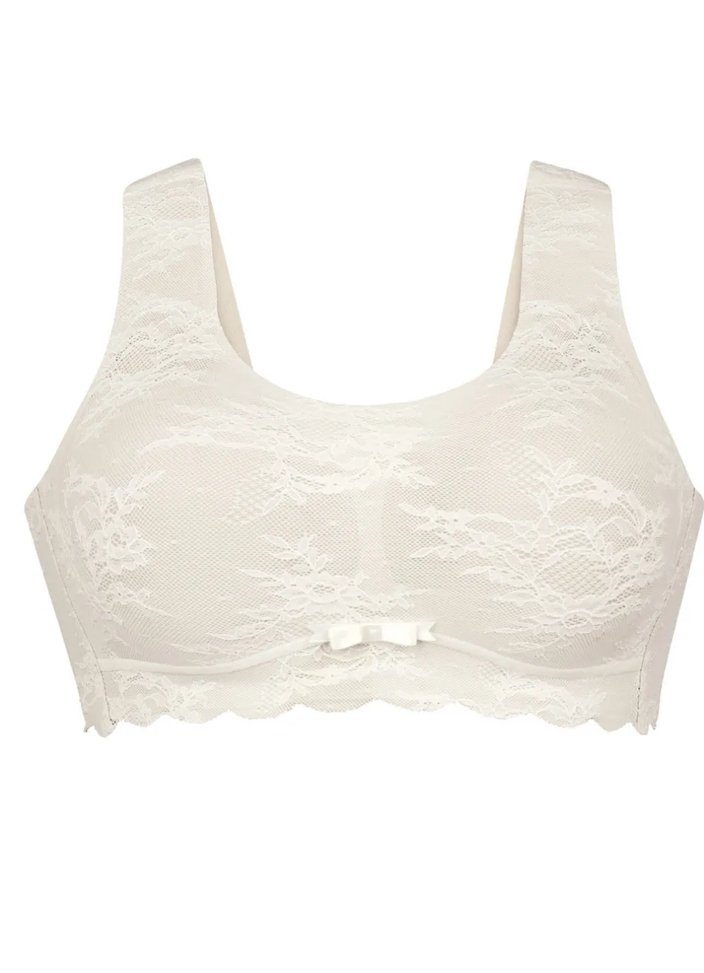 Nahtlos und superbequem: „Anita“-BH aus unterlegter Elastikspitze, mit weichen, herausnehmbaren Pads in den vorgeformten Cups sowie extrabreiten Trägern.