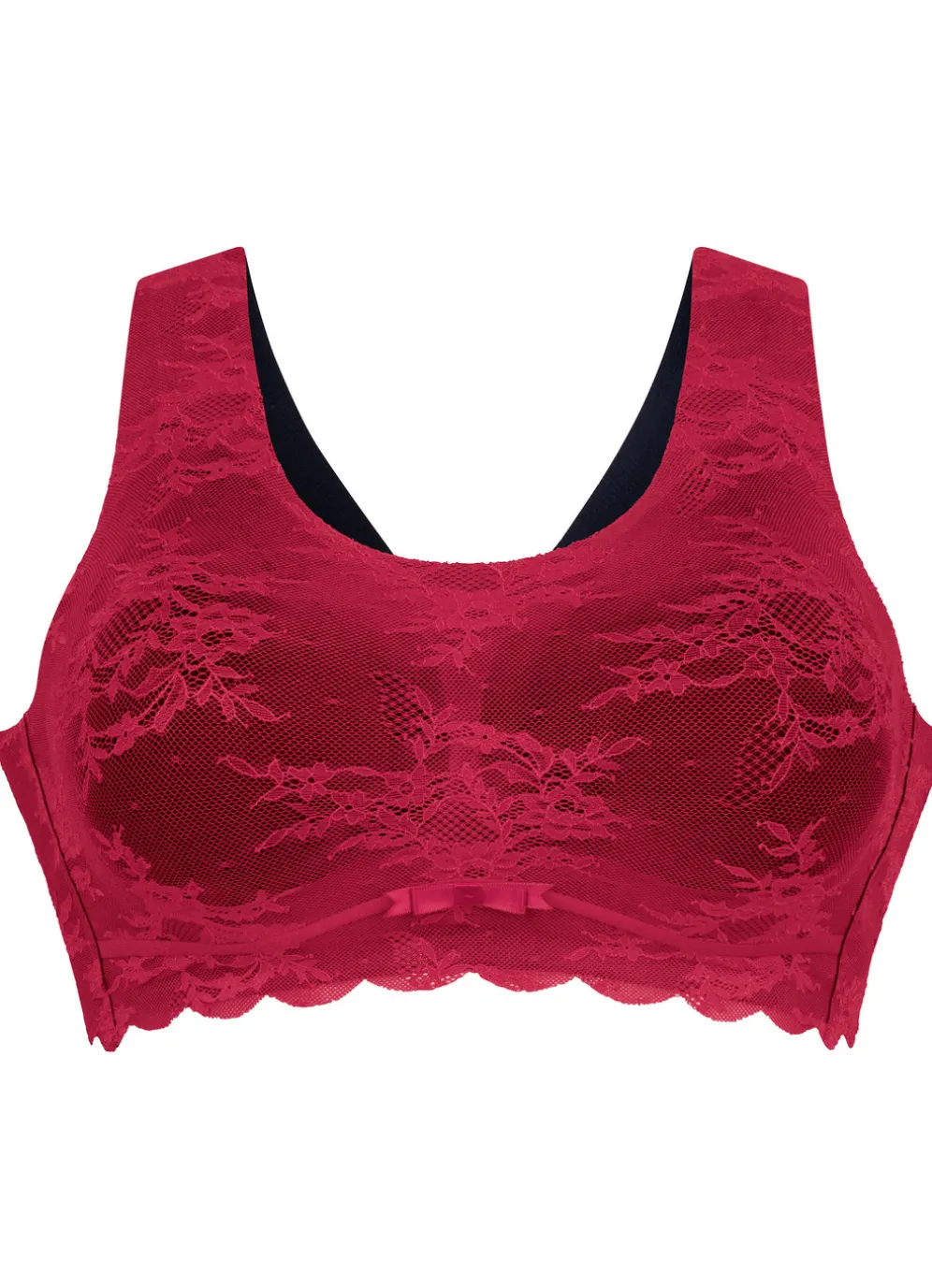 Superbequemer Anita BH aus elastischer Spitze in Rot und in Größe XL.