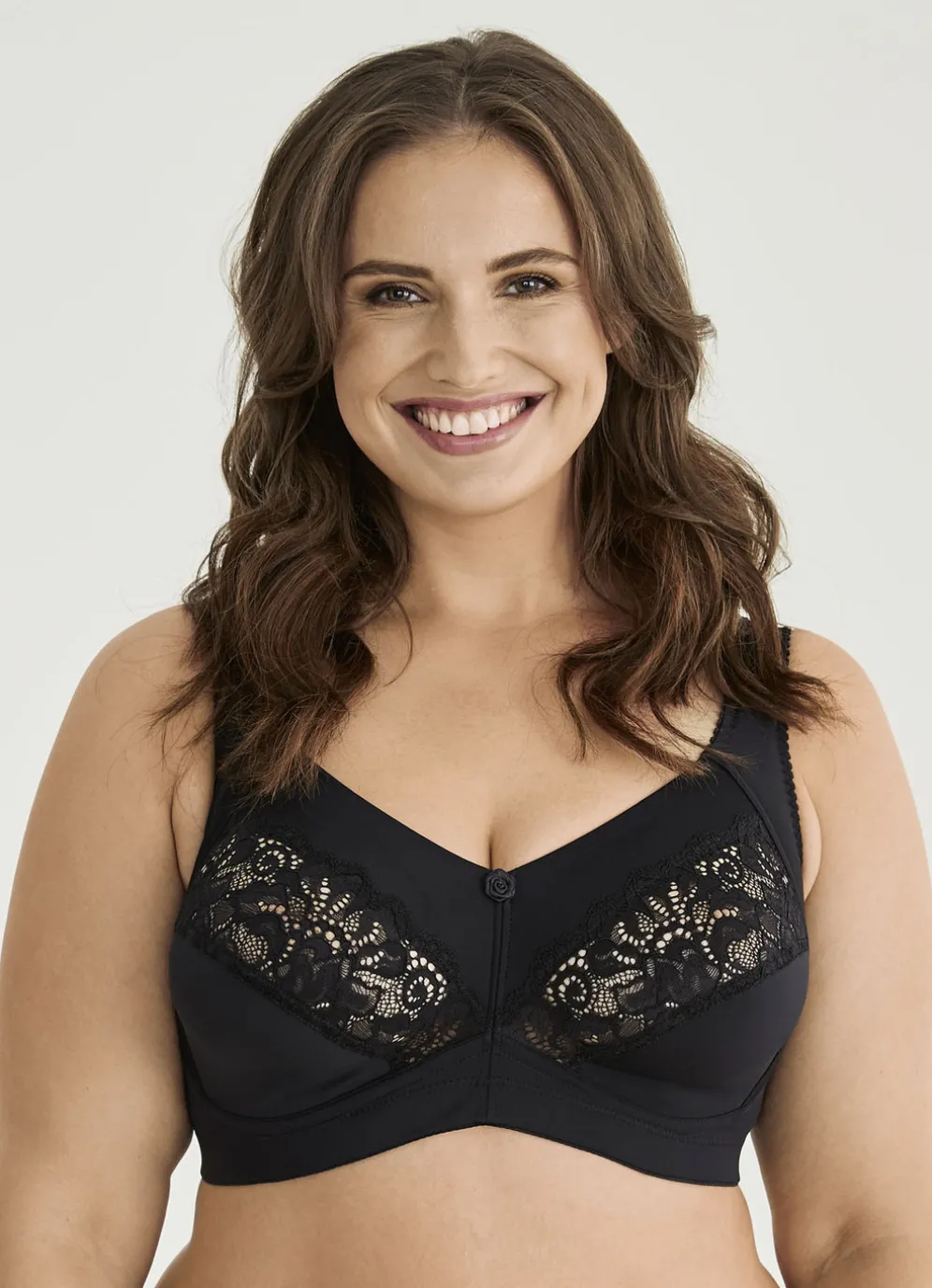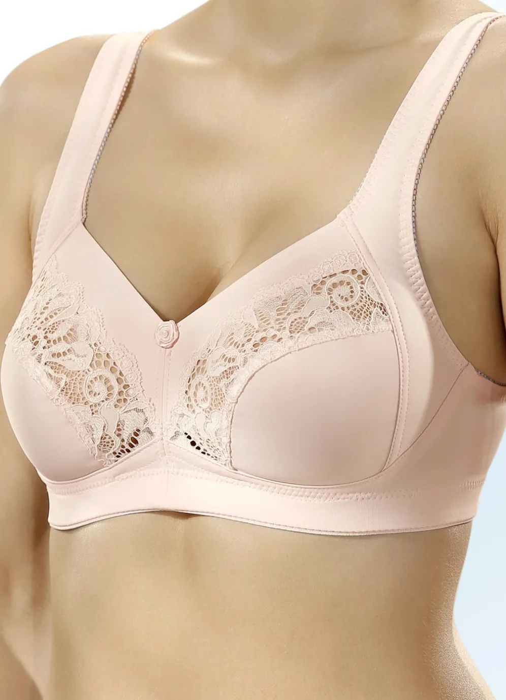 „Swegmark of Sweden“-BH: elastische Spitzeneinsätze im Vorderteil, unterlegte Untercups, seitliche, gepolsterte Blenden für besten Halt, Unterbrustband sowie im Schulterbereich gefütterte, verstellbare Stretchträger.
