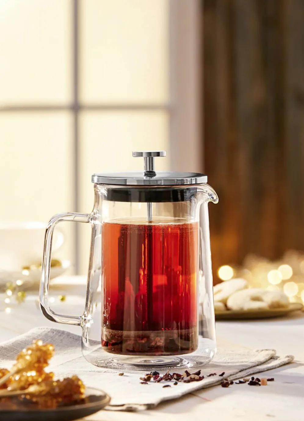Kaffee- und Tee-Presse aus doppelwandigem Glas