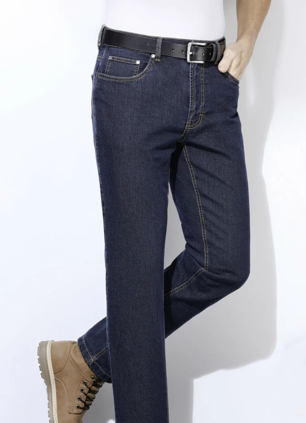 Thermojeans mit Seitentaschen und Kleingeldtasche mit Nietenzier, aufgesetzten Gesäßtaschen mit Ziersteppung sowie Jeanssattel.