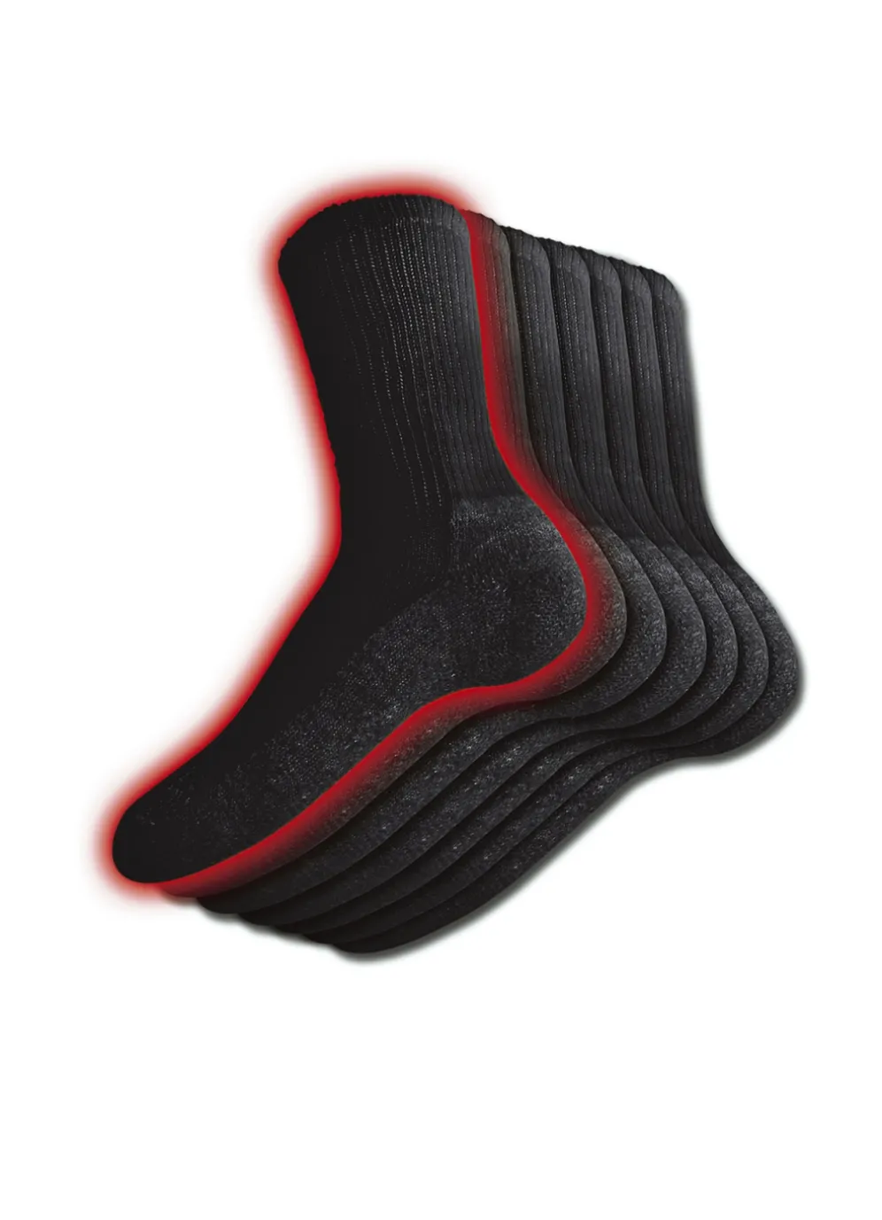 Polar-Mikrofaser Sechserpack Thermosocken. Wohltuende Wärme für Ihre Füße. Hält bis zu 5x wärmer als herkömmliche Thermosocken. Durch die hochwertige Verarbeitung kommt keine Kälte von außen an Ihre Haut, gleichzeitig verlieren Sie so keine wichtige Körpertemperatur.