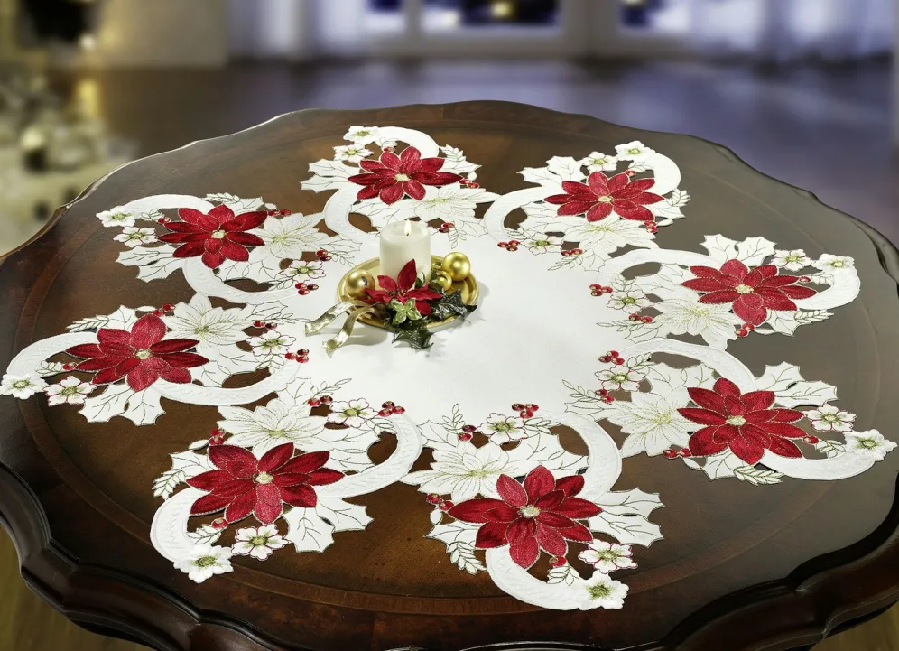 Tisch- und Raumdekoration aus dem Hause Schäfer in Größe 140 (Tischdekoration Stern, ø 40 cm) und in Weiss-Rot.
