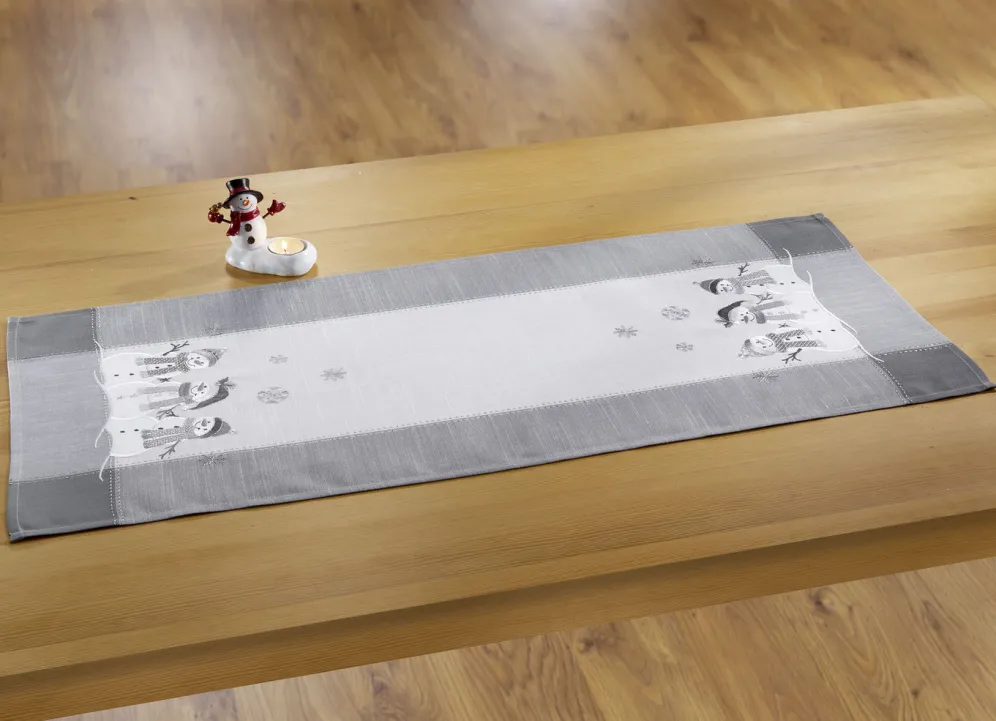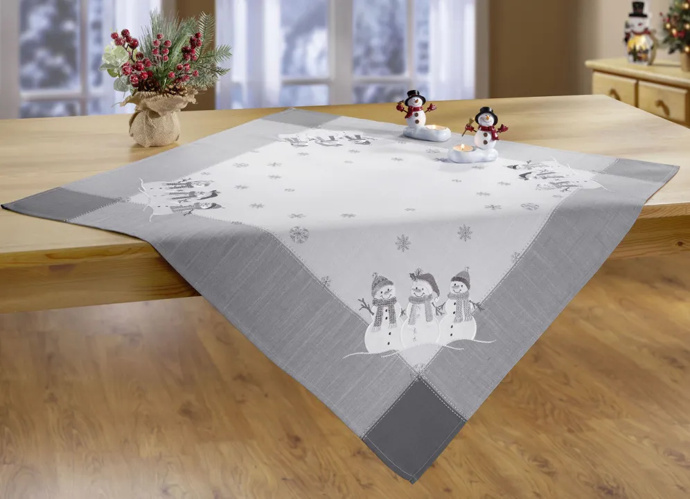 Diese hübsche Tisch- und Raumdekoration in schöner Leinenoptik begeistert mit liebevoll gestickten Schneemännern, die winterlichen Charme versprühen. Kissenbezug mit Reißverschluss. Die Qualität: 100% Polyester. Waschbar bis 40 °C