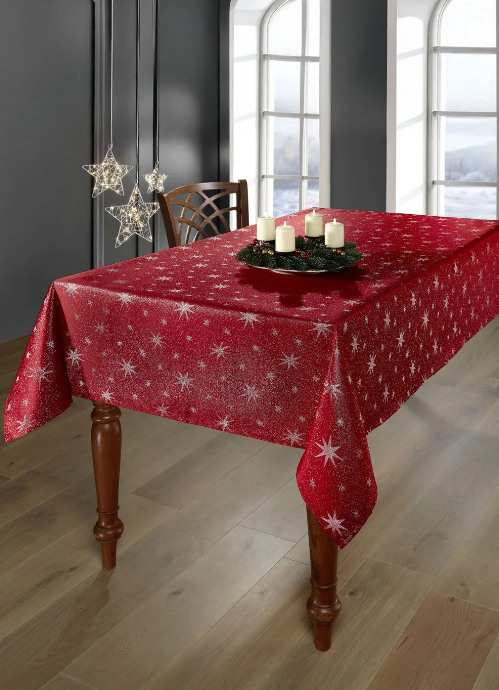 Diese schöne Tischdekoration mit edlem Glitzergarn bringt eine festliche Atmosphäre in Ihre Wohnräume. Dank der speziellen Fleckschutz-Ausrüstung haben Flecken und Schmutz keine Chance – Verschmutzungen lassen sich einfach mit einem feuchten Tuch entfernen. Mit schmalem Saumabschluss. Die Qualität: 70% Polyester und 30% metallisiertes Polyester. Waschbar bis 30 °C.