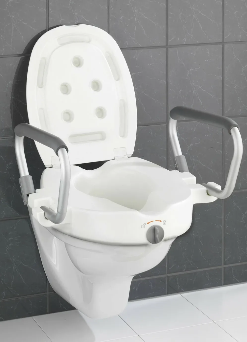 Toilettensitzerhöher mit Armlehnen in Weiss.