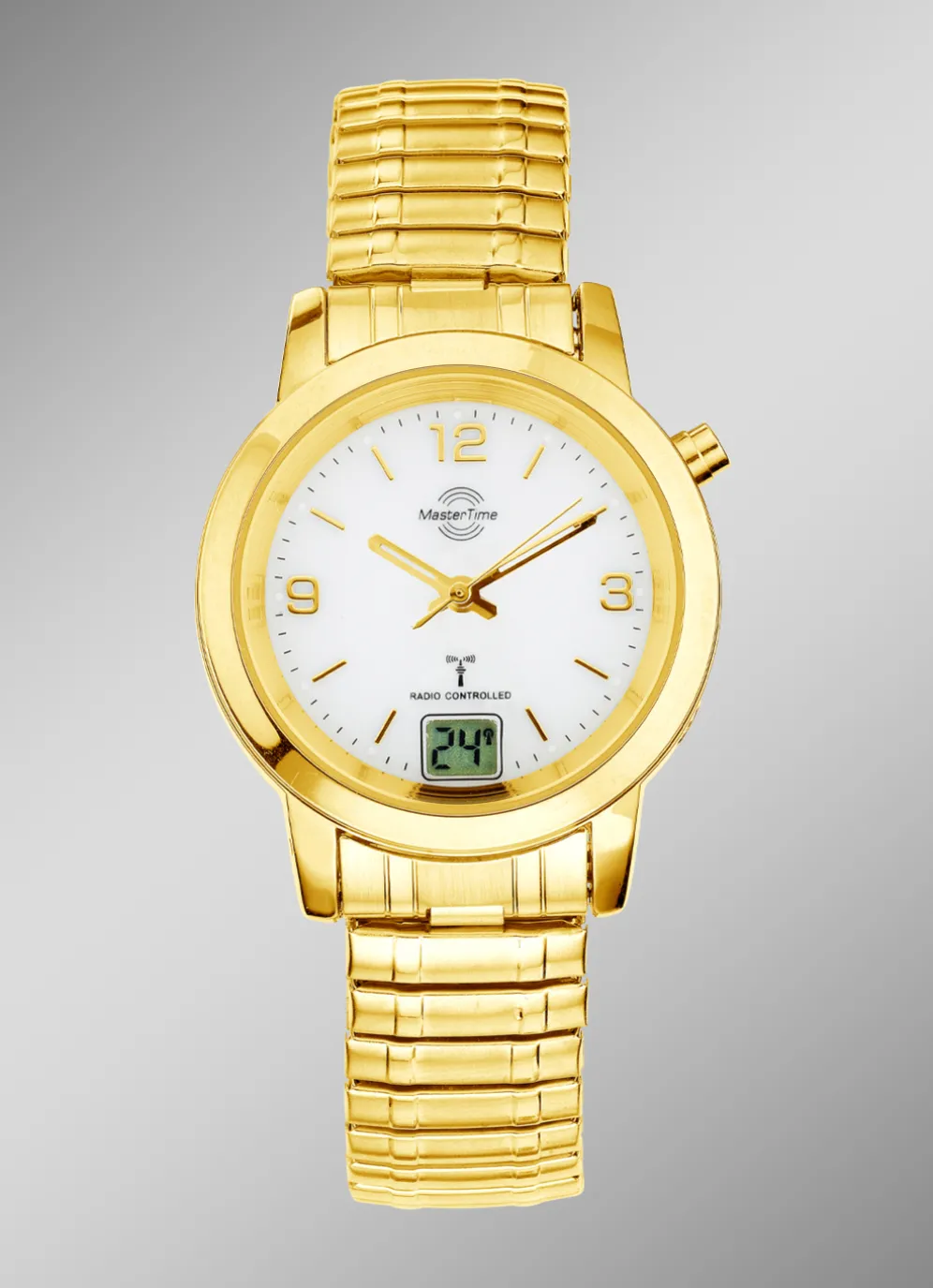 Die elegante und praktische Funk-Damenuhr der Marke Master Time zeigt Ihnen immer die genaue Zeit an.