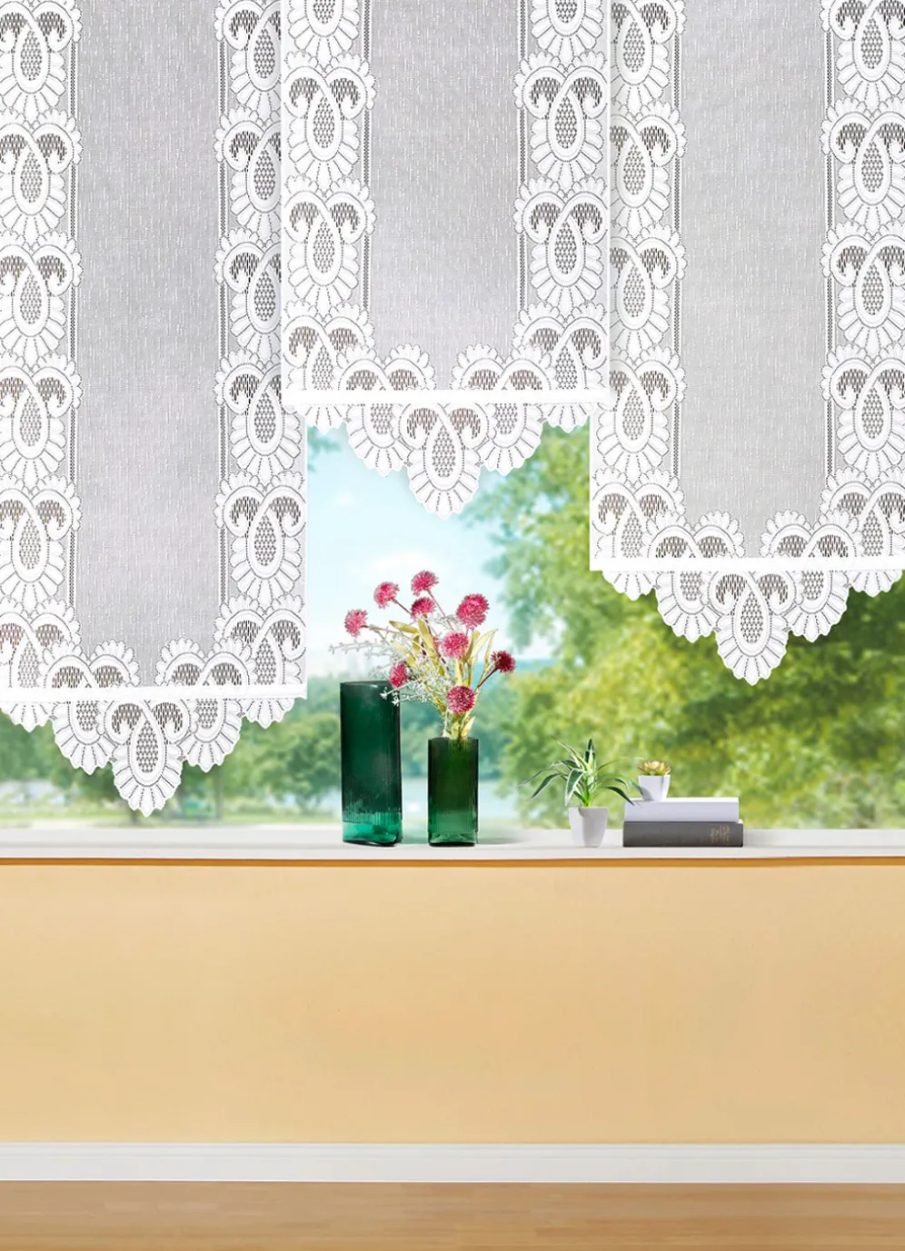 Tolle Schiebegardine mit Dreiecksabschluss in Größe 444 (H 80xB57 cm) und in Weiss.