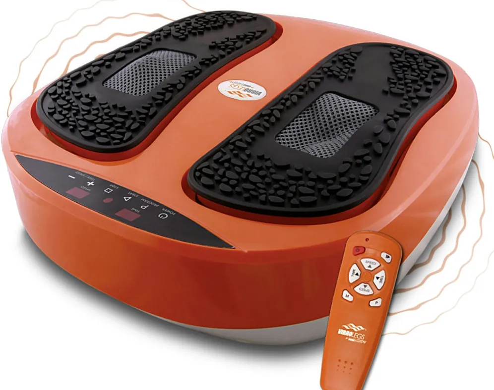 Die weichen Silikon-Fußpads sind abnehmbar und erleichtern eine einfache und hygienische Reinigung. VibroLegs ist kompakt und kann leicht verstaut werden. Im Lieferumfang enthalten: 1x VibroLegs, 1x Fernbedienung ohne Batterien, 1x Trainingsplan. Mit Netzteil, 230 Volt, 30 Watt. Maße: ca. L35xB40xH14 cm.