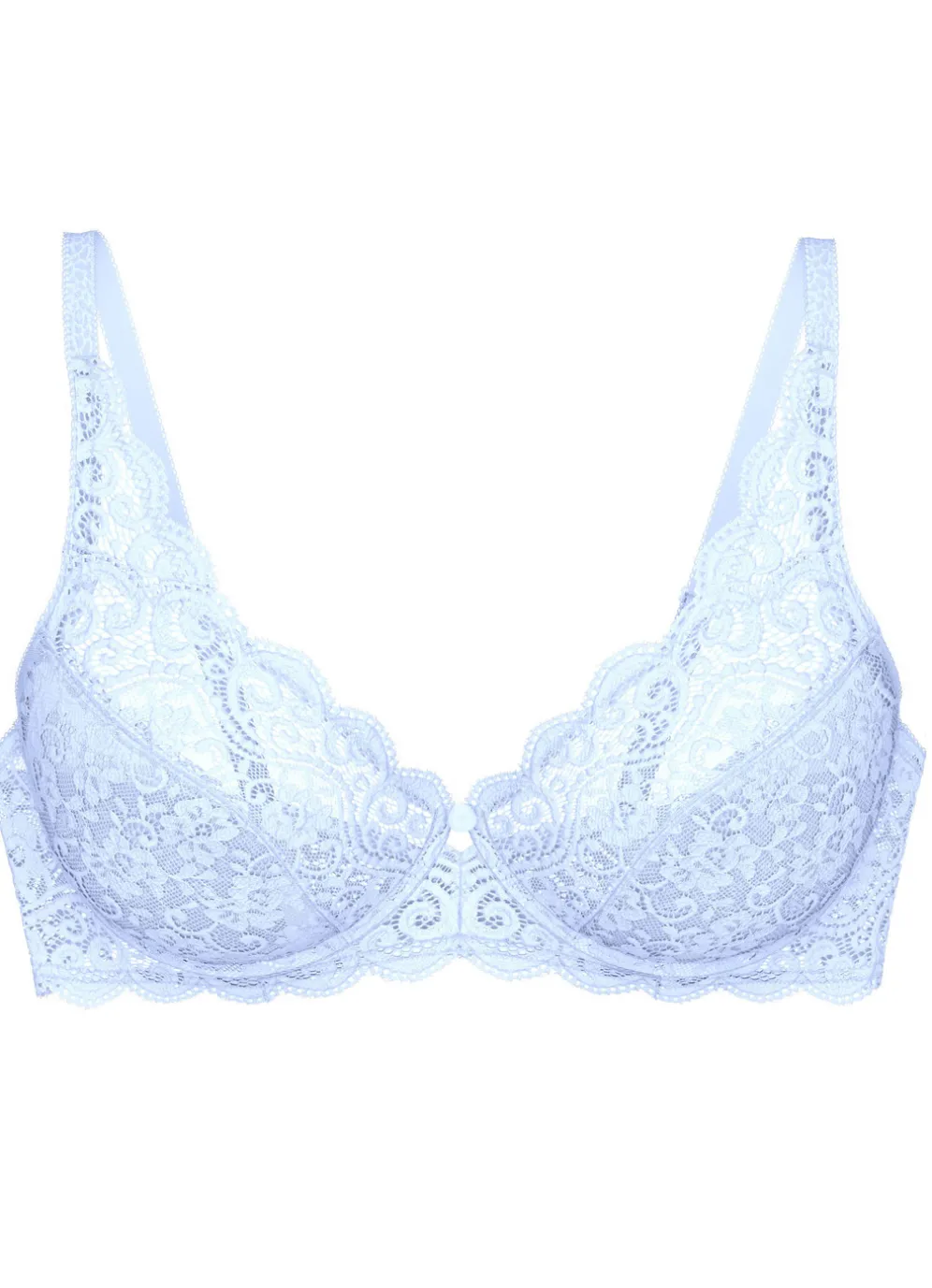 Triumph Amourette Bügel-BH aus zarter Elastikspitze in Cup D, in Bleu sowie in Größe 100.