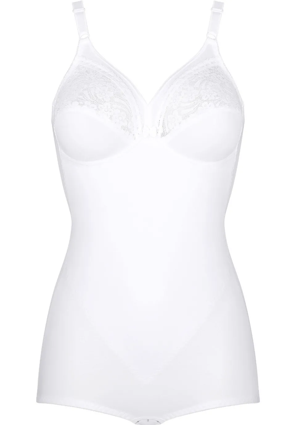 Triumph Hosenkorselett mit Baumwollspitze in den Obercups in Cup D, in Weiss sowie in Größe 95.