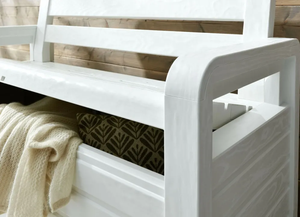 Truhenbank in toller Holz-Optik in Weiss.