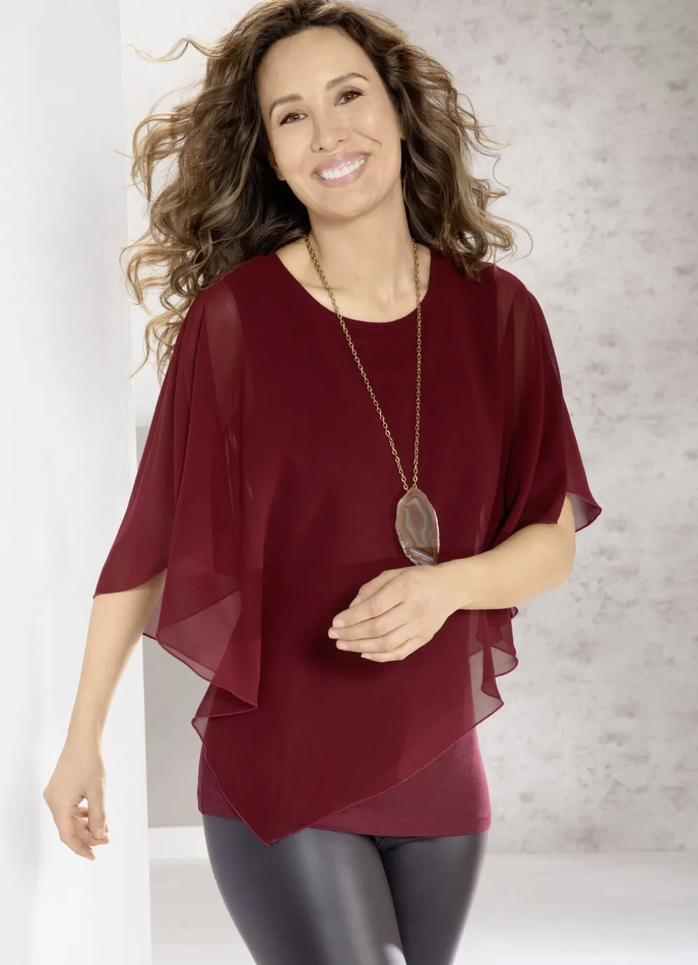 Unifarbene Poncho-Tunika in Bordeaux und in Größe 40.