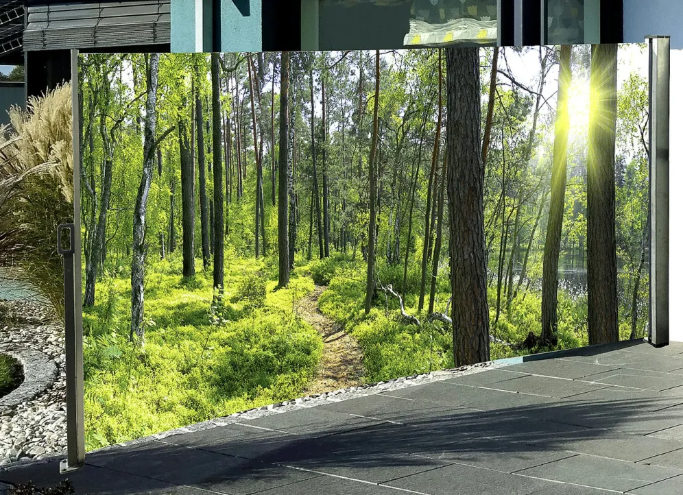 UV-beständige Seitenmarkise in der Ausführung Kassette rechts, Auszug nach links.