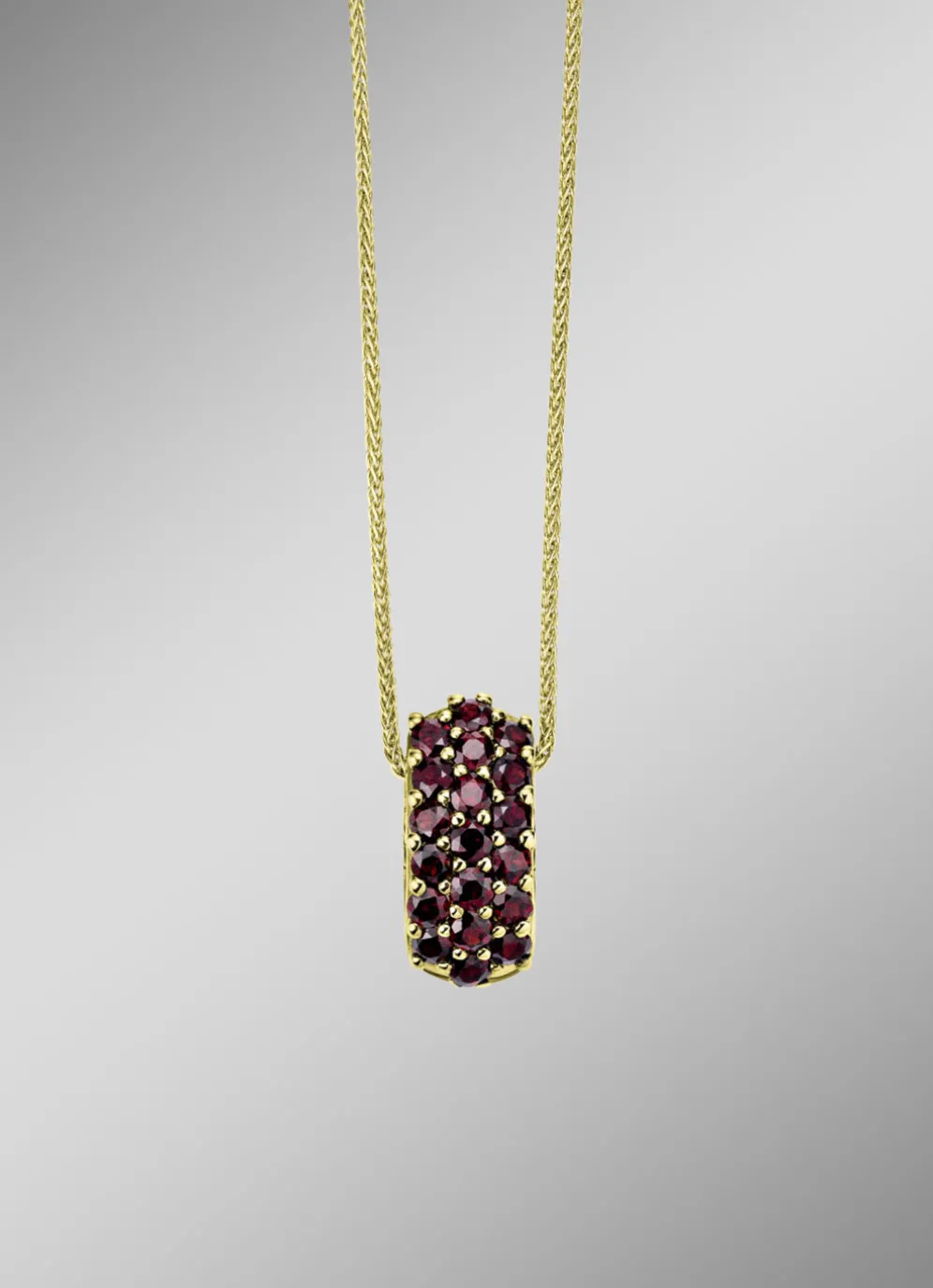 Erleben Sie die zeitlose Schönheit dieses Anhängers aus feinstem 925er Silber, vergoldet und verziert mit echten Granat-Steinen. Mit seinen Maßen von 18×8 mm ist dieser Anhänger ein eleganter Blickfang, der jedes Outfit veredelt. Die dazugehörige Zopfkette, 45 cm lang und mit einem sicheren Karabinerverschluss versehen, rundet das edle Design perfekt ab.