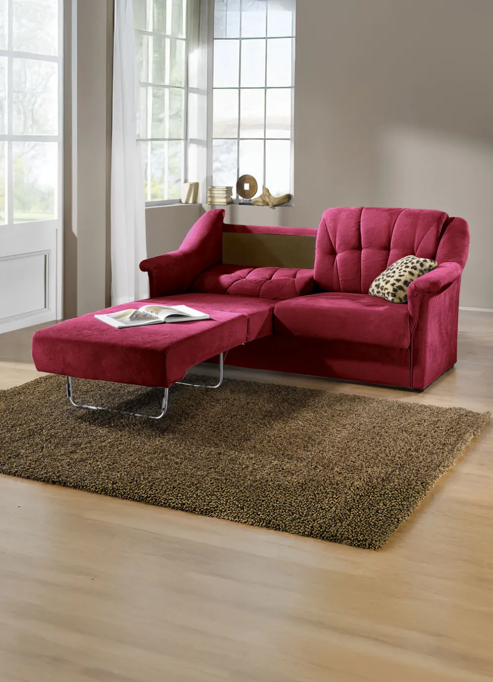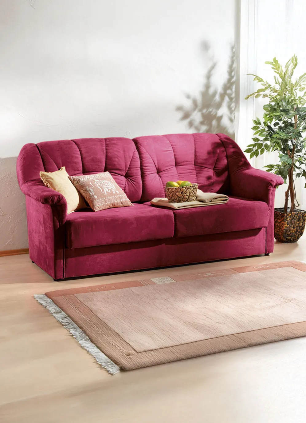 Verwandlungssofa mit hochwertiger Polsterung mit Bezug Alinesse und in Weinrot.