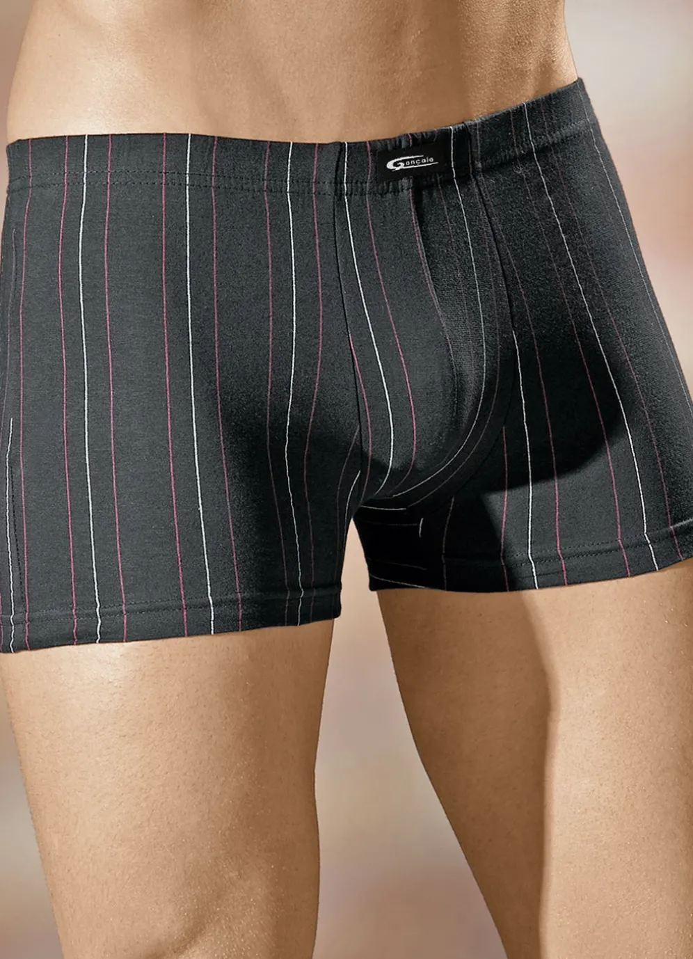 Viererpack Pants mit Streifendessin in 2X Schwarz-Bunt, 2X Steingrau-Bunt und in Größe 4.